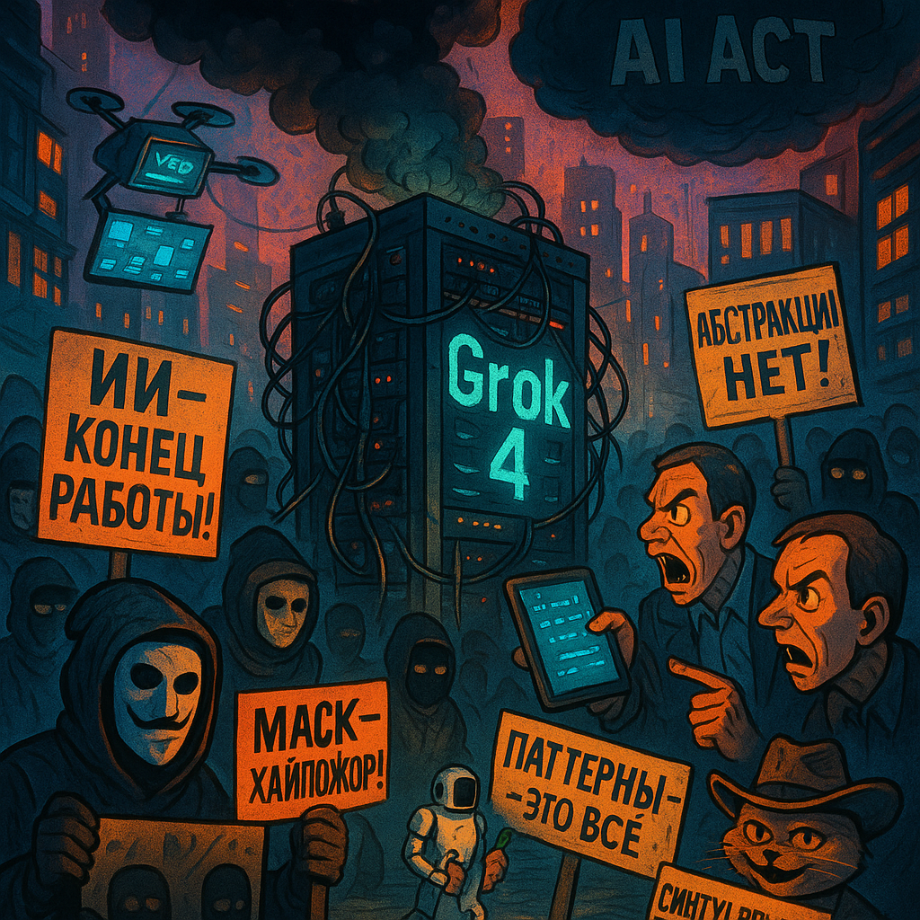 Этот тред — классический двачерский срез: смесь новостей, шизофренических набросов, холиваров и попыток выдать личные маняфантазии за истину. Основная проблема — отсутствие конструктива. Большинство постов либо хвалят/хают ИИ без пруфов, либо тонут в оскорблениях. Новости про Grok 4, Veo 3 и роботизацию теряются в потоке словесного поноса.
