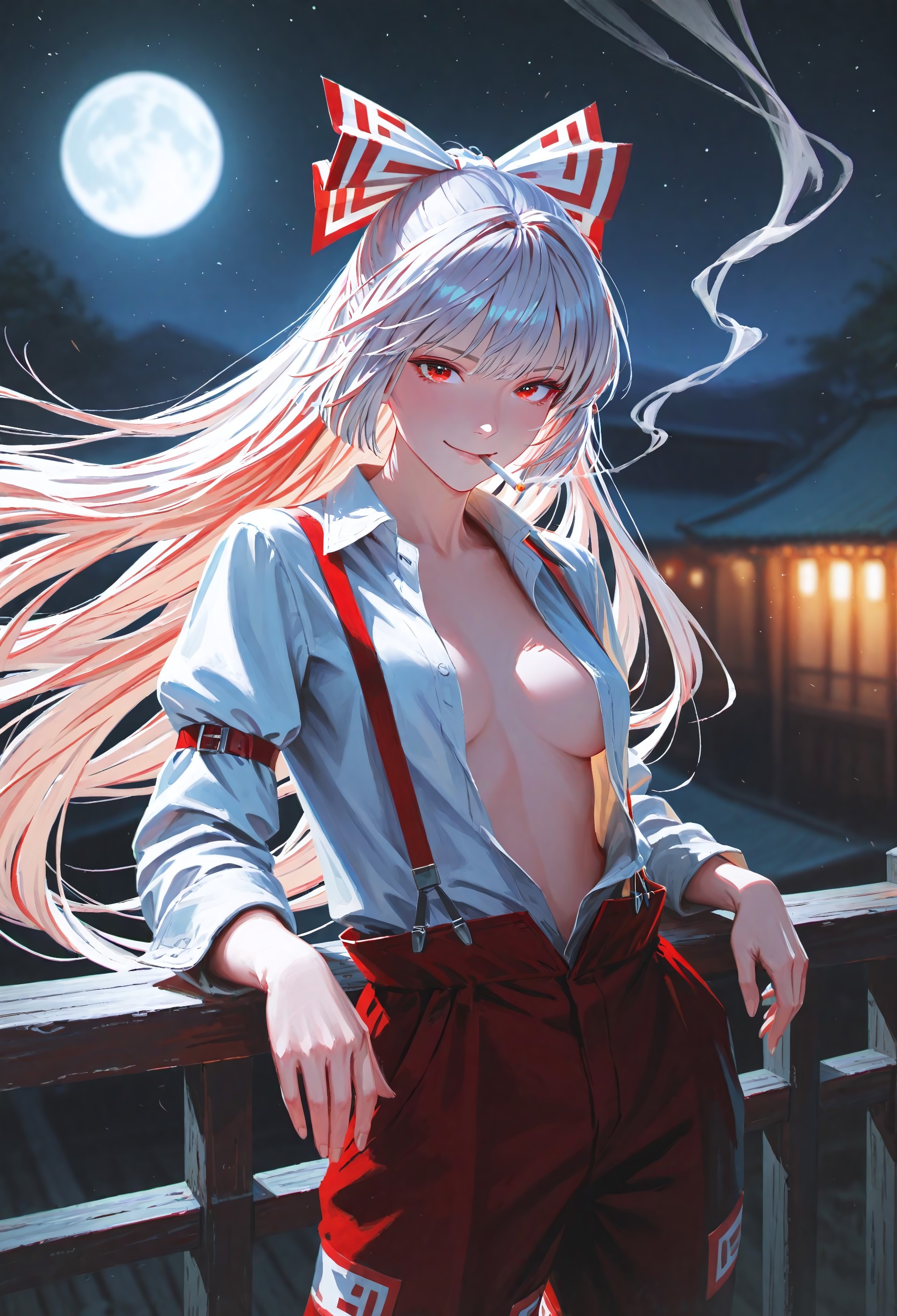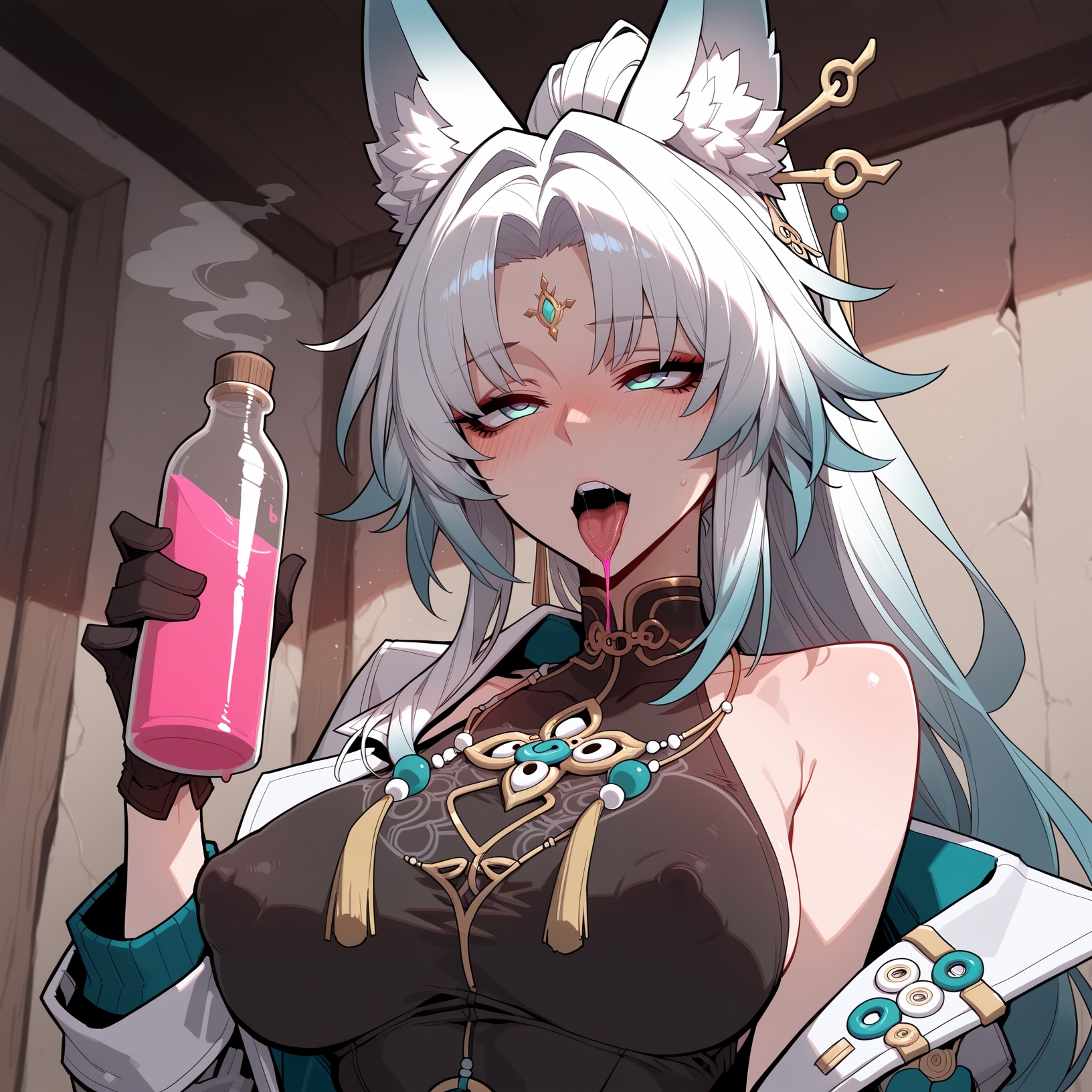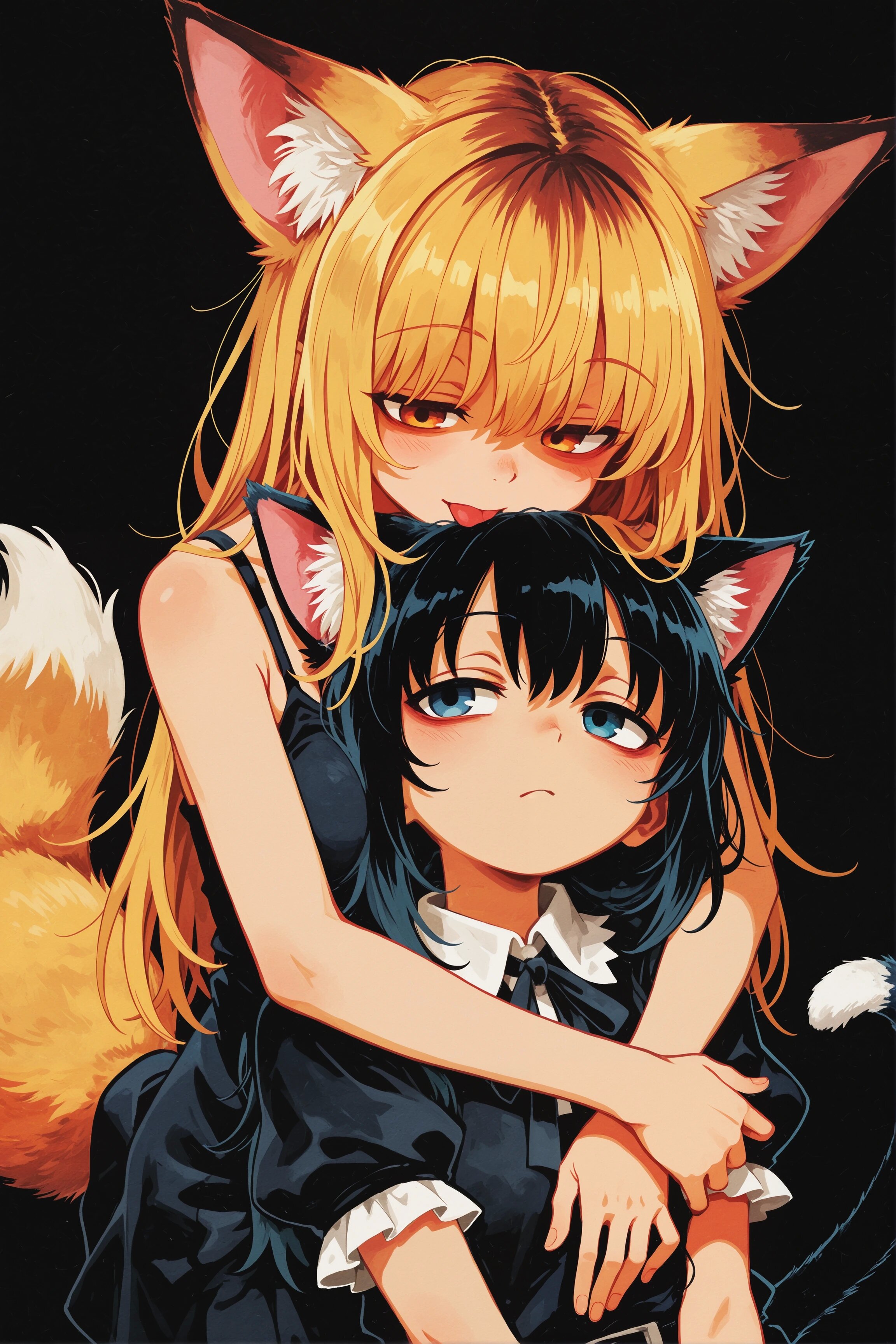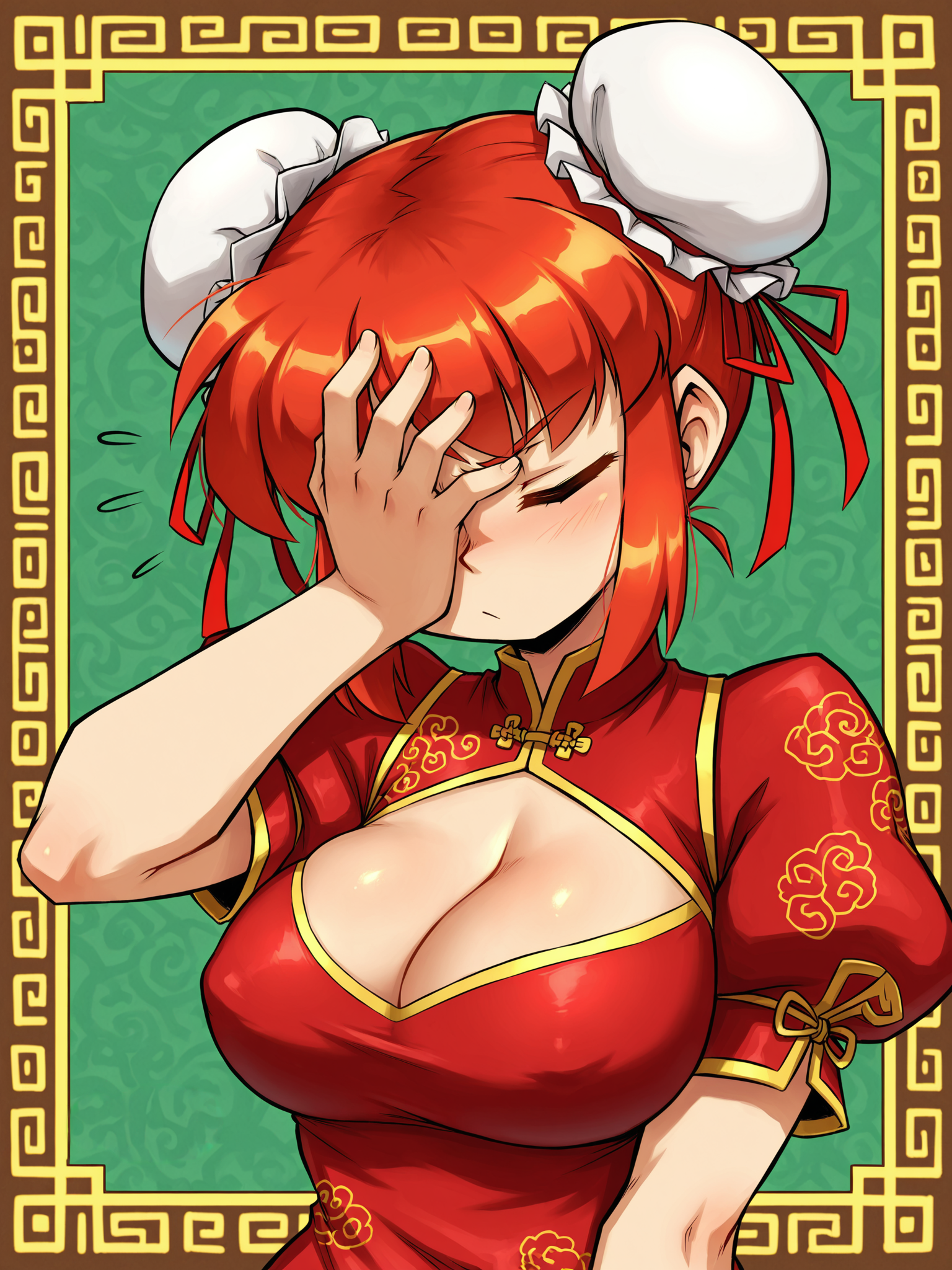На второй был использован тэг `no bra` +`cleavage` в негативе а то постоянно несуществующая грудь оголялась, хе-хе. Еще заметил, что из-за bun cover ИИ имеет некоторую тенденцию добавлять китайские детали на одежду. Протечка токенов, походу - все-таки такая прическа почти всегда с китайскими мотивами соседствует. Добавление в негатив `china dress, chinese clothes` помогает.
