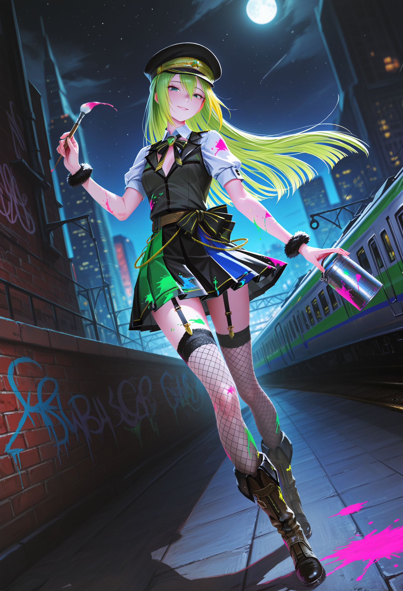>Еще заметил, что из-за bun cover ИИ имеет некоторую тенденцию добавлять китайские детали на одежду. Протечка токенов, походу - все-таки такая прическа почти всегда с китайскими мотивами соседствует. Добавление в негатив `china dress, chinese clothes` помогает. Еще я вижу на твоих картинках (и на моих тоже самое происходило) протечку токенов с джинсовой куртки на юбку, в идеале она должна быть кожаная как у девушки на пике. Также я в своем промпте пытался вытащить рукава из под куртки, в 25% случаев получалось в 75% нет.