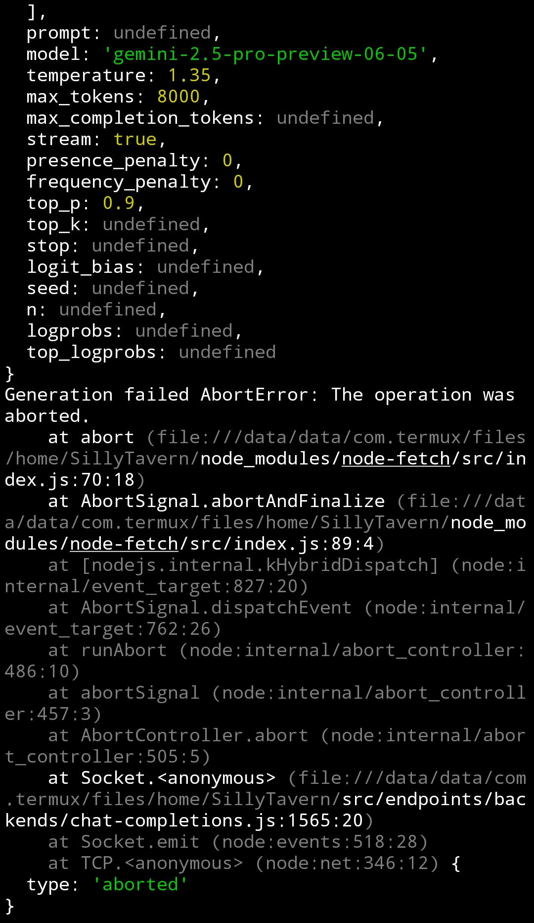Итс овер, снес таверну и переустановил все, проблема так и не пропала - прокси на клауде не желают писать ответ, сплошные undefined с AbortError в конце, хотя подключение все же есть. То ли РКН шатает провайдера, то ли что. Но видимо кум мне больше не светит... 😭