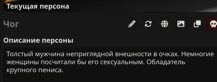 >>1277866 >>1277858 Вы, долбоёбы, реально думаете, что кто-то играет на пустом Аноне, а не на прописанной персоне у которой просто название Анон? У меня персона Анон называется, потому что не хочу сливать своё имя корпам и когда логи в тред кидаю, но в персоне прописана моя примерная внешность как я выгляжу ирл и плюс размер члена 15 см прописан.