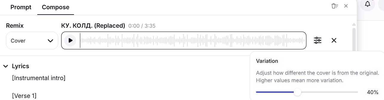 Редакция трека после генерации (можно убрать вокал и оставить только инструментал и наоборот, убрать шумы и т.д.)