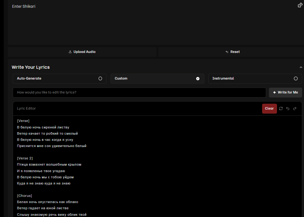 Новинка, по качеству звука на уровне Суно или чуть выше. Лучший по качеству генератор текстов на русском. Количество генераций в день не ограничено, но за некоторые функции нужно платить (загрузку аудио, стемов и т.д.)
