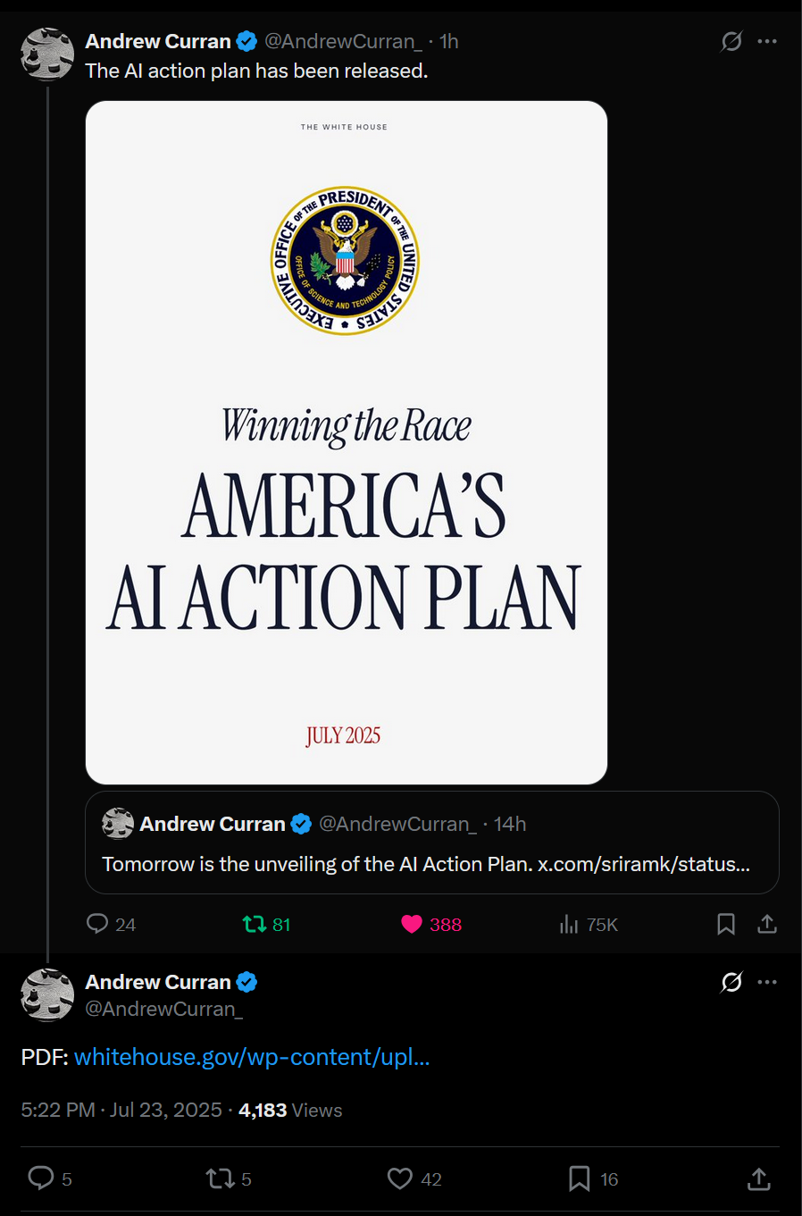 Администрация американского президента представила план по развитию нейросетей в США, который сможет перевернуть ИИ-игру: