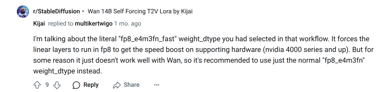 >>1270221 Разве quantized wan не>>1270221 >Если с lightx2v, то около 2 минут на 4060 16GB, 4 шага, с блоксвапом от 12 до 20. >>wan2.1-t2v-14b-Q3_K_M.gguf >А это нахуя. Чтобы генерации быстрее были, или это не играет роли?