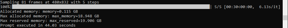 В общем репортую, с файлом подкачки все хорошо работает. Дефолтный воркфлоу с видео + ноду лоры добавил, больше ничего. 5070ти+16рам+файл подкачки на 64гб = видос в 400х400 на 5 сек за 5-6минут