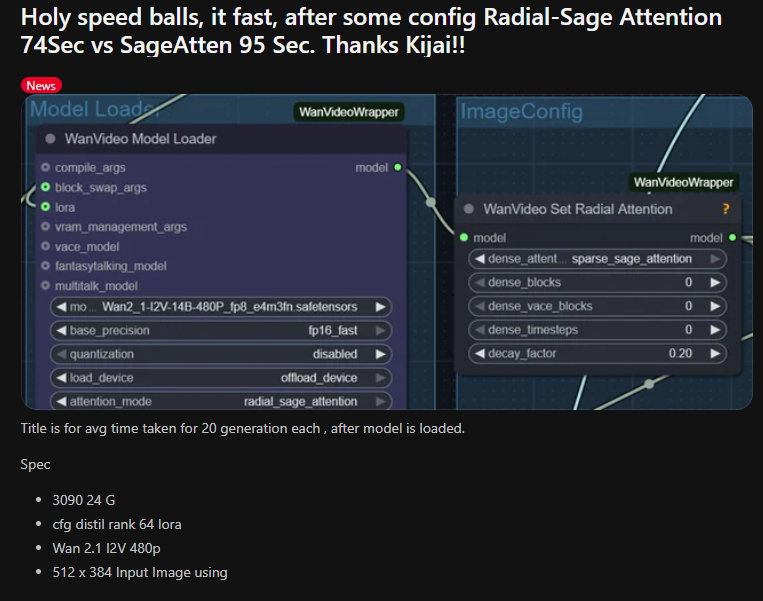 >>1280598 >это замедляет ген ну я сейчас заметил, правда 28с или 31с итерация при 5 шагах не такая потеря) Я просто на эту шляпу обратил в вф на 1 кадровой генерации картинки с помощью вана, наверное там актуальней. Сейчас хочу копнуть в сторону нунчака, правда тоже хуйпойми что это, просто слышал. И еще какую-то хуету увидел - Radial attention. Чесна заебали все эти креаторы, каждый день хуйню высирают, пойди разберись во всем этом хламе.