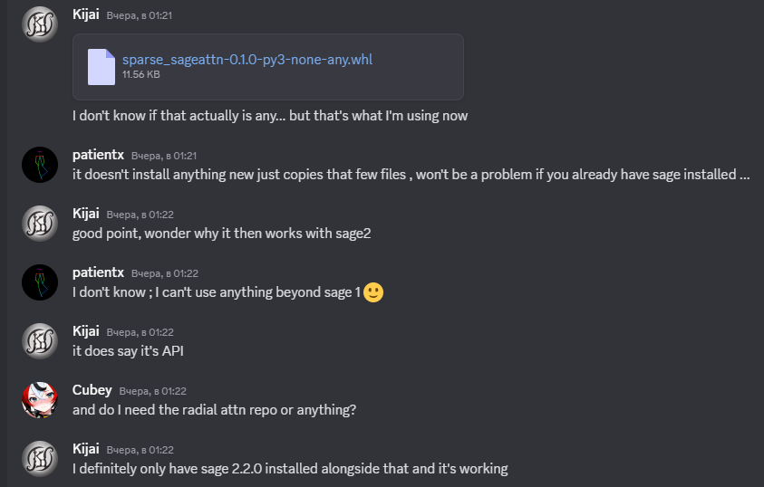 Тритон стоит, CUDA 12.8 стоит, сажа тоже стоит >pip install sageattention Requirement already satisfied: sageattention in c:\users\user\appdata\local\programs\python\python313\lib\site-packages (2.2.0+cu128torch2.7.1) Но конфи ее так и не видит блэт. Ставил десктоп версию. Куда копать? Гайды на гитхабе один хрен направляют на портабл версию, с папкой python_embeded. И торч показывает версию просто 2.7.1 а не 2.7.1+cu128. Я свихнусь с этого дерьма, видимо тупой слишком.