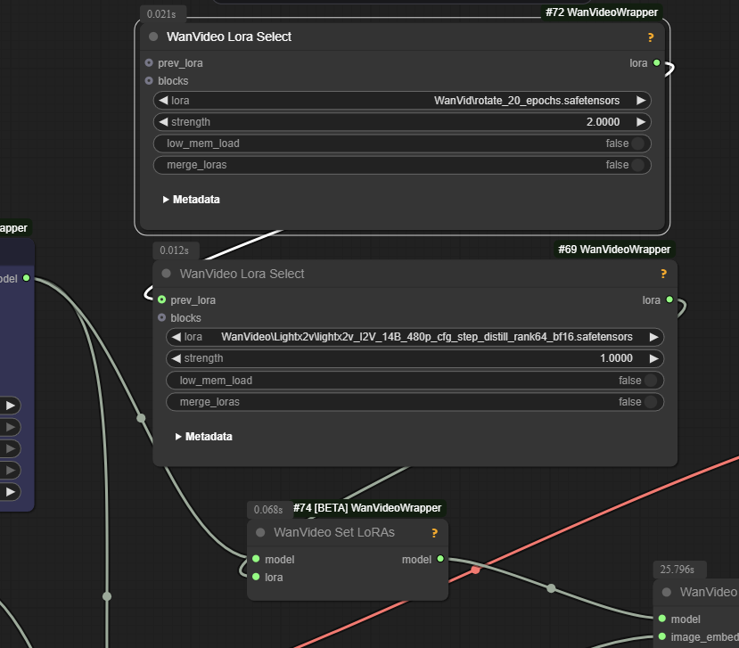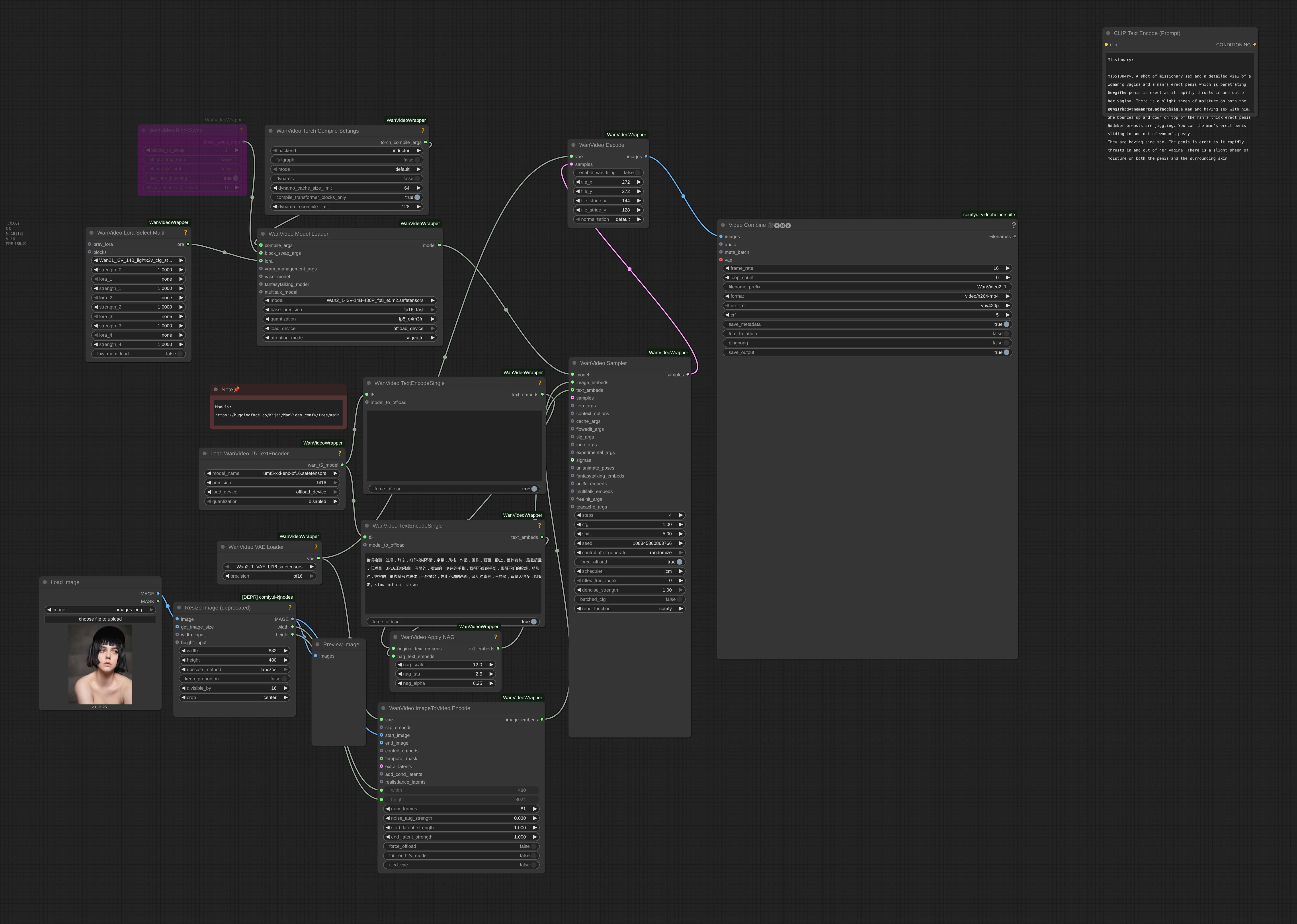 >>1287078 Не ебу что там за воркфлоу. Кидаешь пикрил в комфи, качаешь все зависимости и кайфуешь. Лоры кидаются в ComfyUI/models/loras, а потом достаются из "WanVideoLora" в воркфлоу модели кидаешь в ComfyUI/models/diffusion_models