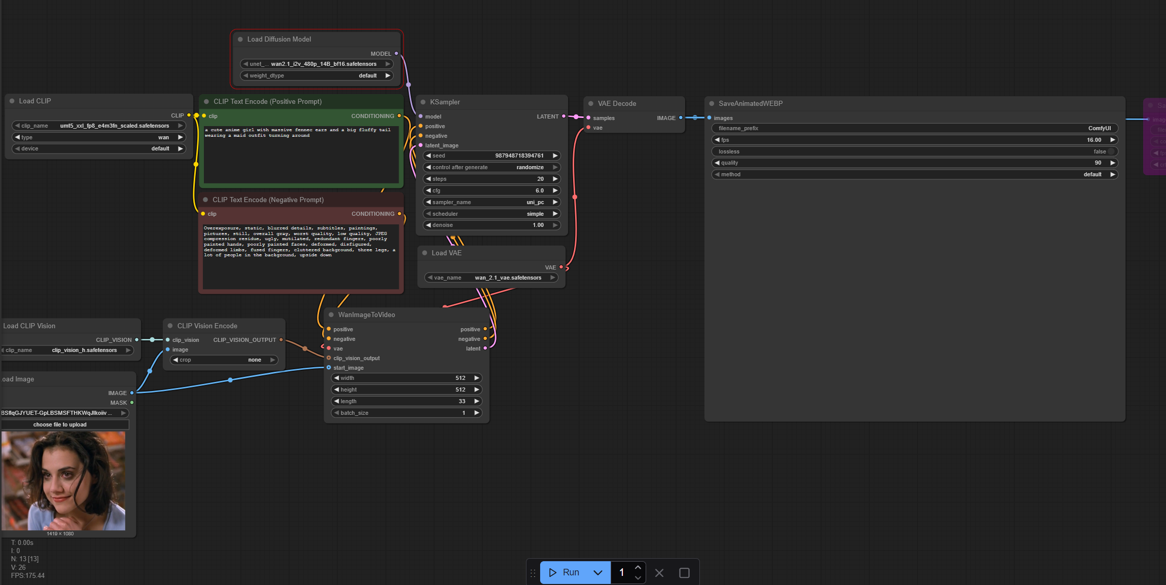 >>1279424 браток у тебя там диптрот и камшот какбы взаимоисключающие лоры, к тому же у тебя воркфлоу I2V, а ты грузишь lightx T2V, а еще у тебя входящее изображение 512х512, а ты его зачем то растягиваешь до 512х640