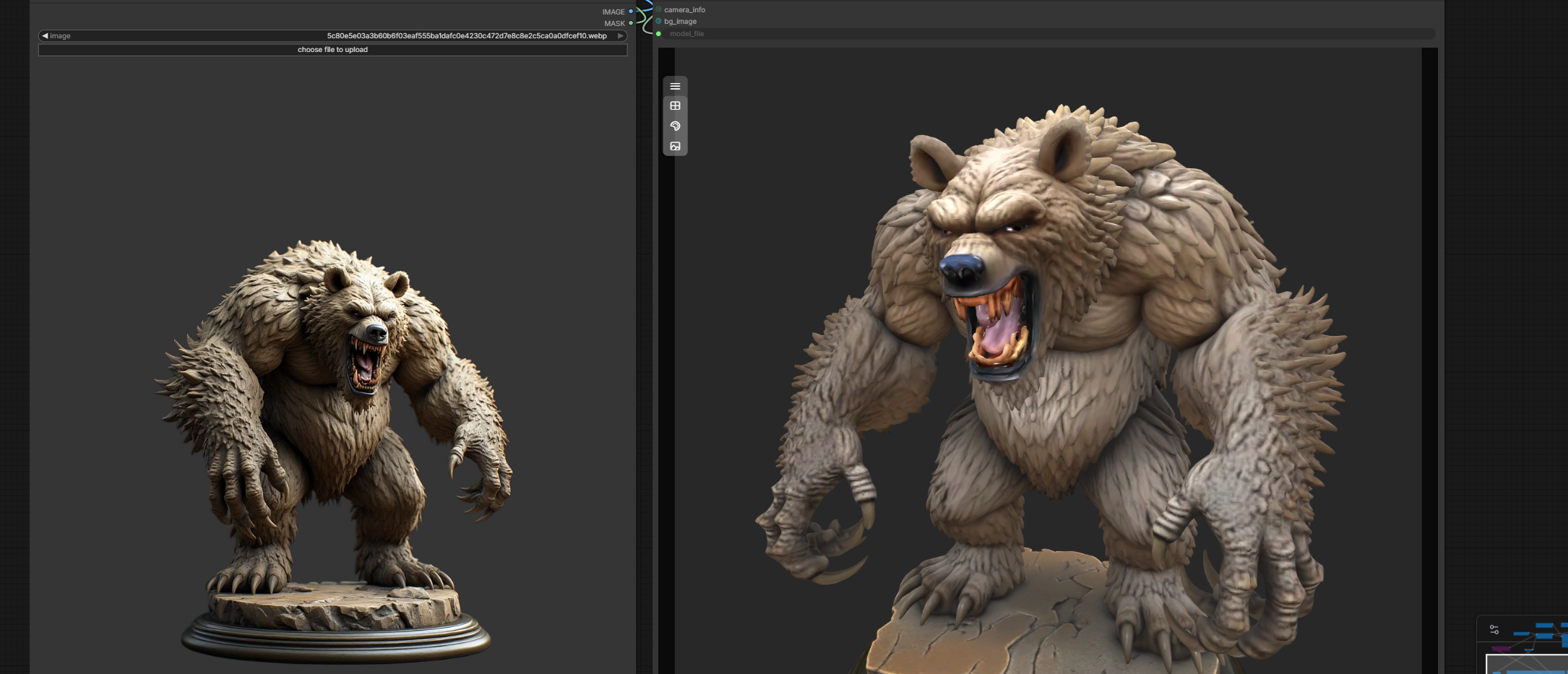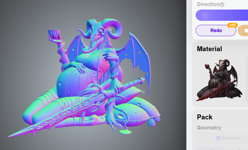 >>1480945 В общем, вот такой получается рабочий процесс, trellis на первый взгляд генерит лучше, но жрет ебать сколько памяти и видимо только потому что генерит с внутренними стенками, но работать уже можно - генерация, ретопология, запекание текстуры, ручная правка текстуры. Я так понимаю китайский аналлог вообще текстуры генерировать не может и все представленные в стеи варианты, это генерация модельки, затем генерация карты глубины, затем рисование на этой карте глубины другой моделью сдхл/квен/флюкс.