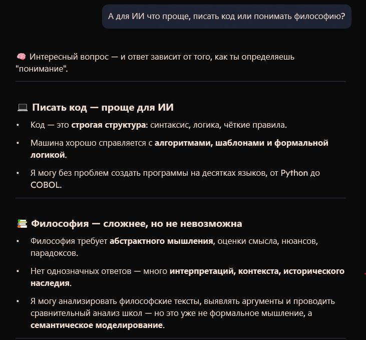 с появление пятой модели продуктивные философские обсуждения будут мертвы, каждый девятиклассник и птушник сможет интеллектуально доминировать над своим оппонентом вгоняя своего собеседника в бесконечный цикл.