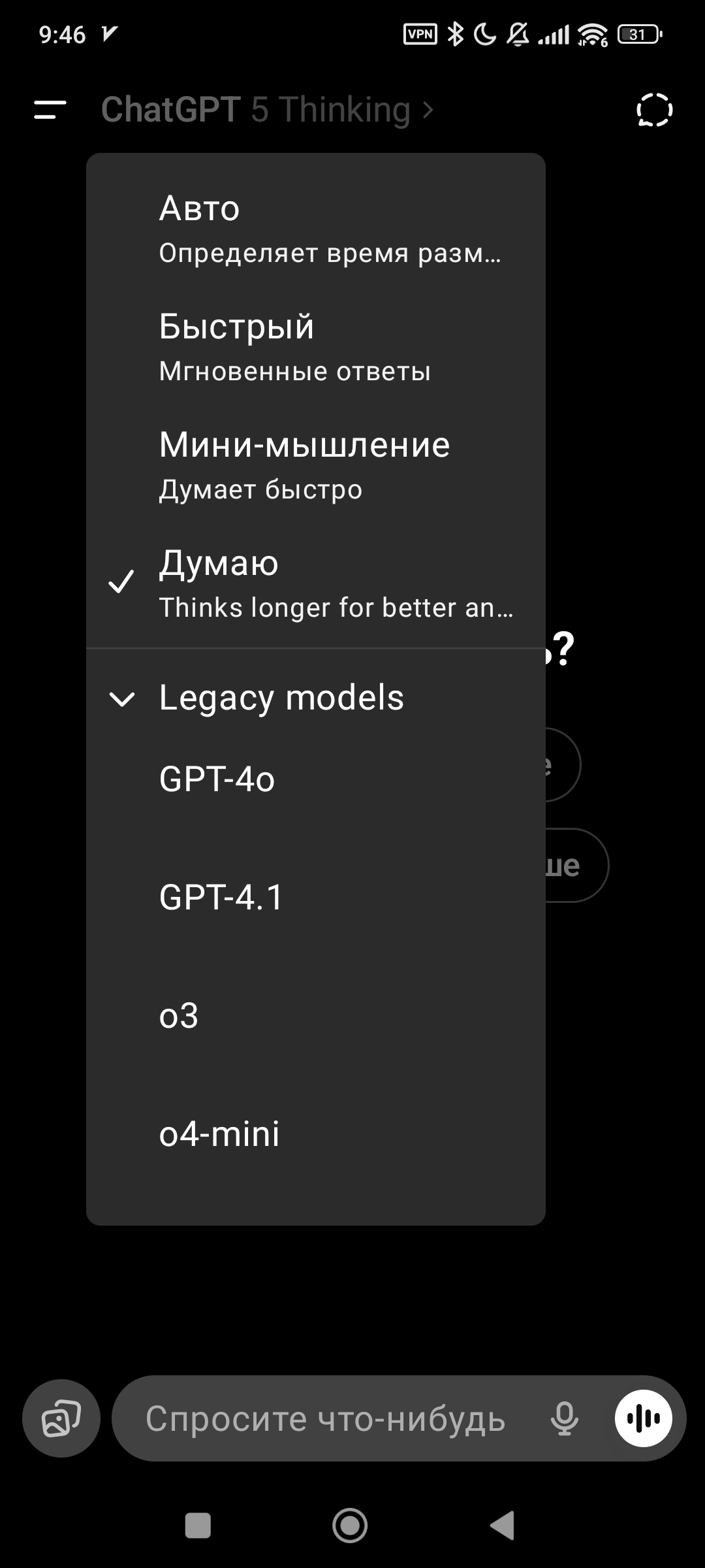 Да, я про модель, которая долго думает. Сейчас для задач пригодна только она. Обычная пятерка вообще не вывозит.
