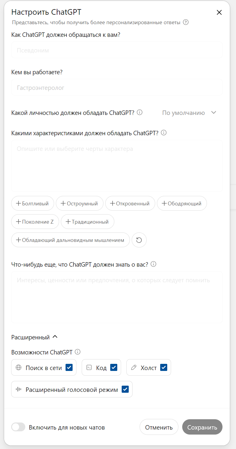 У чатгпт кросс-чатовая память есть что ли? Он просто к слову в новом чате откуда-то упомянул мой возраст. Это реально? мне страшно может у него и отпечаток ануса мой есть
