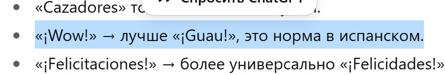 Переводчик из него, просто мама мия нахуй. В первом посте он говорит лучше заменить "¡Wow!" на "¡Guau!", во втором посте говорит заменить "¡Guau!" на "¡Wow!". Переводчик с биполярочкой...