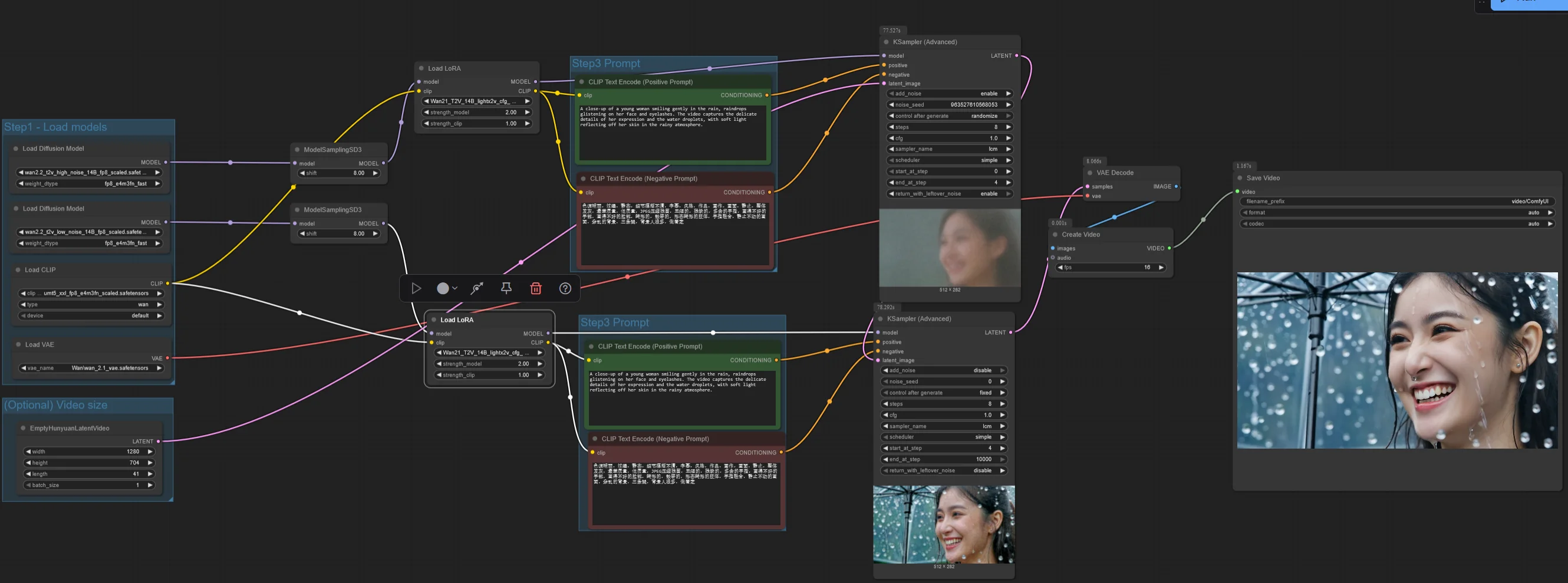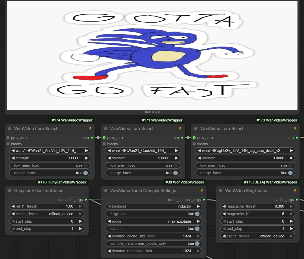 >>1291490 Нужен lightx2v новый, чтобы не 20 шагов, а 4 шага генерило. Ван без нее и был неюзабельным, кстати. Там придумывали хитрые воркфлоу для ускорения хотя бы вдвое, но все еще ждать 6-7 минут ради 3-5 секунд было ну такое. А вот дистиллят охуенно сработал, конечно.