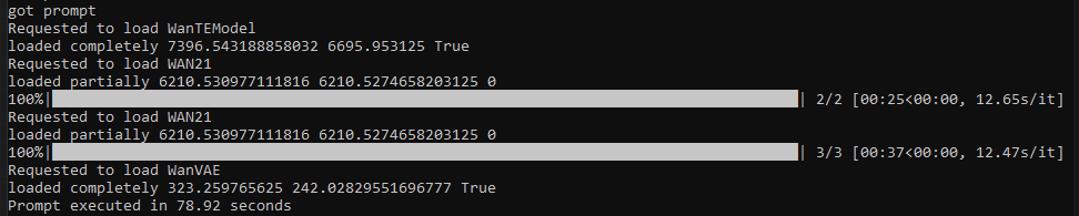 Ну, я рискнул запустить базовый workflow для i2v A14B на 3060. Из положительного - оно даже завелось, без OOM.(640х480, 85 кадров). Из отрицательного - 120 секунд на один шаг. Ы...