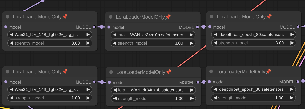 >>1300598 еще учти, что теперь лоры надо для хай нойза и лоу нойза дважды загружать. Для лоу нойза как обычно можно 1 ставить, для хай нойза у той же лоры вес уже можно поставить 2 и выше, тестить надо для каждой лоры. Ну и лайт лора вес 1.5 в лоу нойзе и вес 3 в хай нойзе