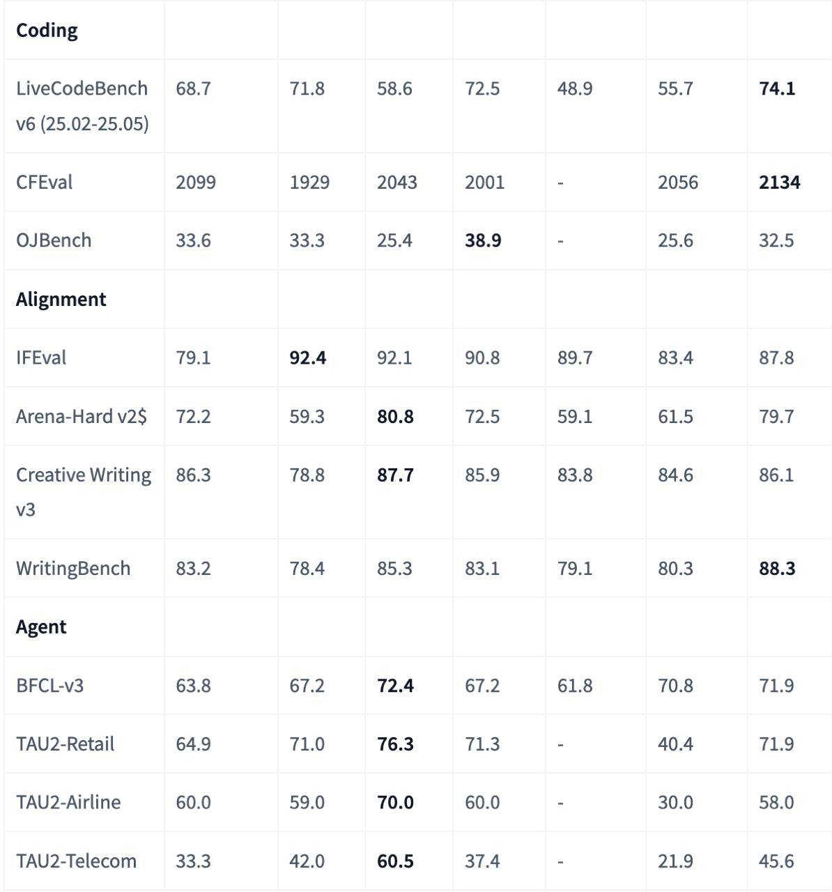 На многих тестах модель обгоняет Gemini 2.5 Pro, o4-mini и свежую версию R1. То есть мало того, что это новая опенсорс SOTA. Это вполне себе уровень закрытой frontier модели. Мед.