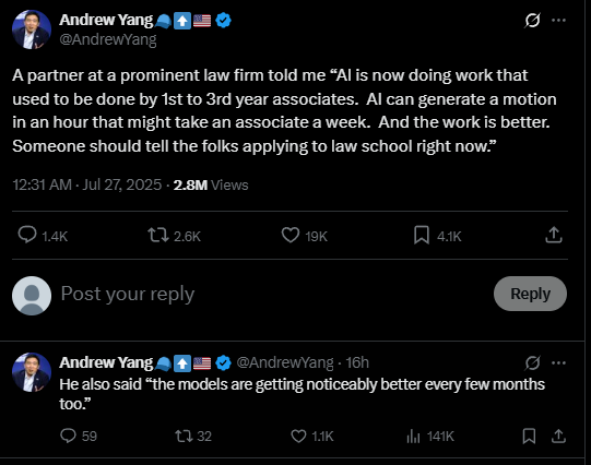 >>1288504 Тебе не ошибки надо находить, а работу выполнять. ИИ сейчас уже может выполнять работу на уровне среднего чела. Спец его уделает за счет общего понимания, но это не везде нужно. Там где нужно много компетенции, останутся люди, но таких работ меньшинство.