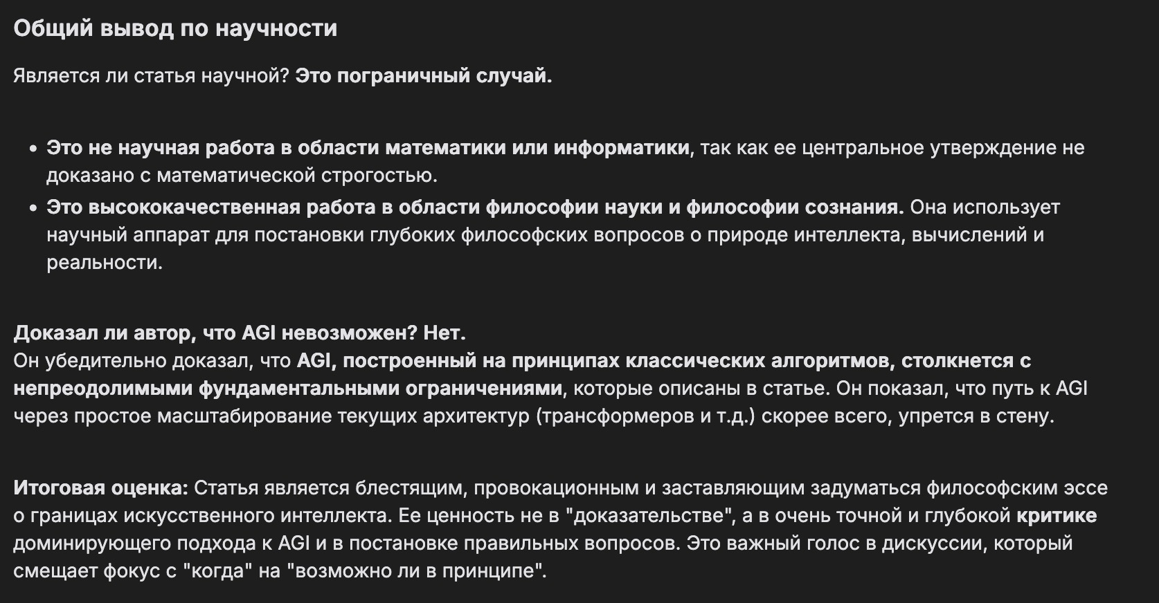 Т.е. можно говорить, что пока ИИ выдает некое обобщенное решение на базе скормленной информации, но не может сам проводить исследования, узнавать новое, т.е. никакого намека на АГИ.