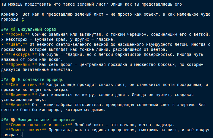 >>1293379 >"Зеленый лист дерева" Чо, железка уже отвечает лучше чем 10-летний ребёнок.
