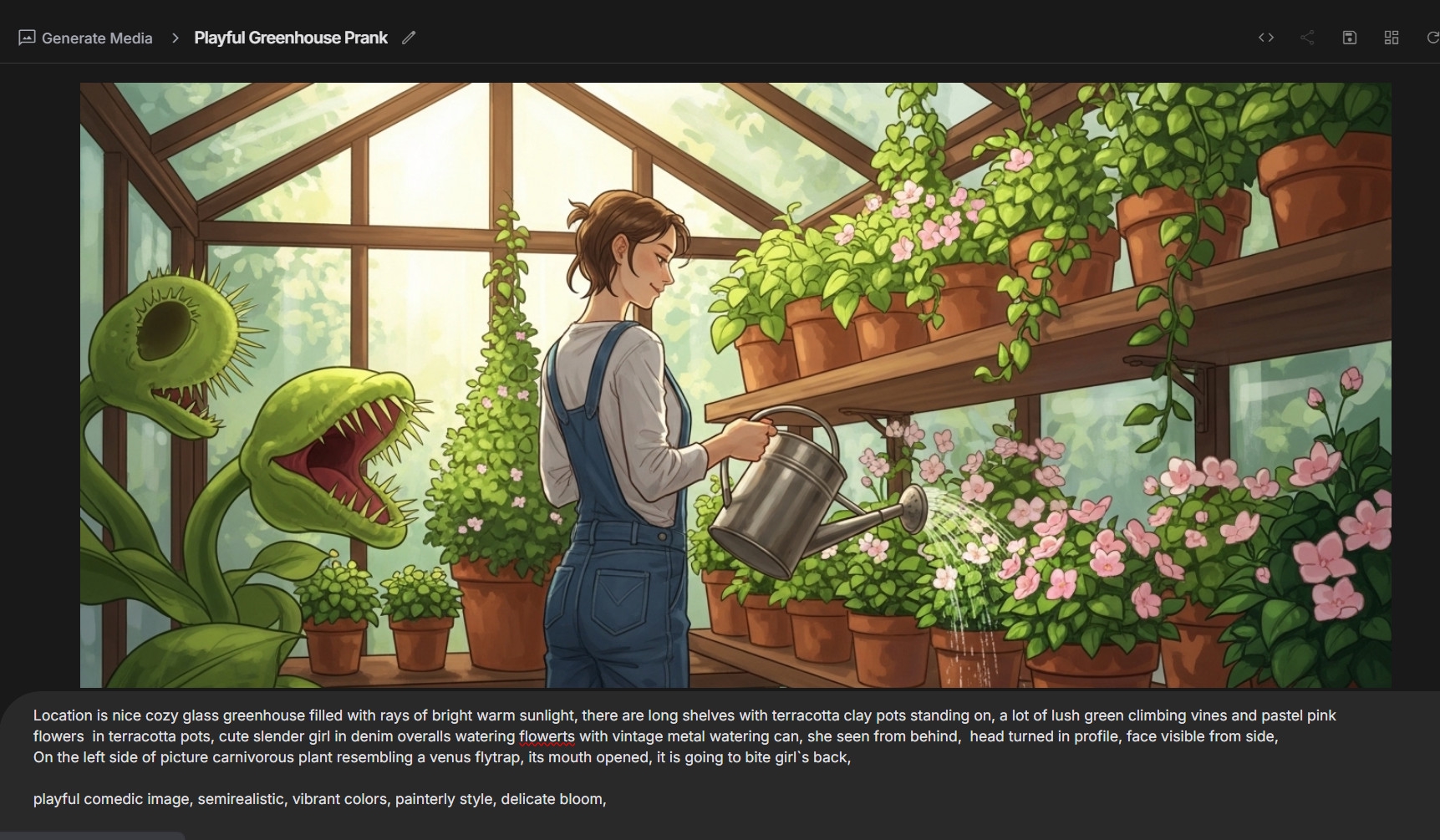 >>1296054 Хромка где-то с третьей попытки выдала. >Даже словесные нейронки не могут внятный запрос составить по такому описанию. А потому что у тебя запрос говно. Я минимальные правки внёс: вместо абстрактного "собирается кусать" пишешь "открыла пасть", вместо "поливает" - "держит в руках лейку". Сеточке нужны объекты а не эти твои действия и намерения.