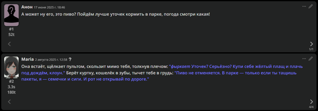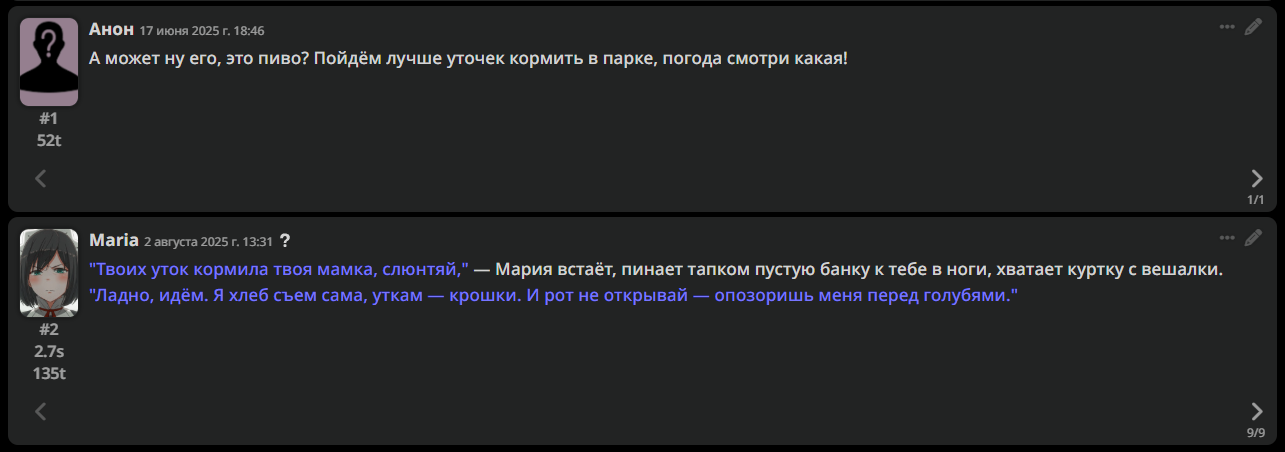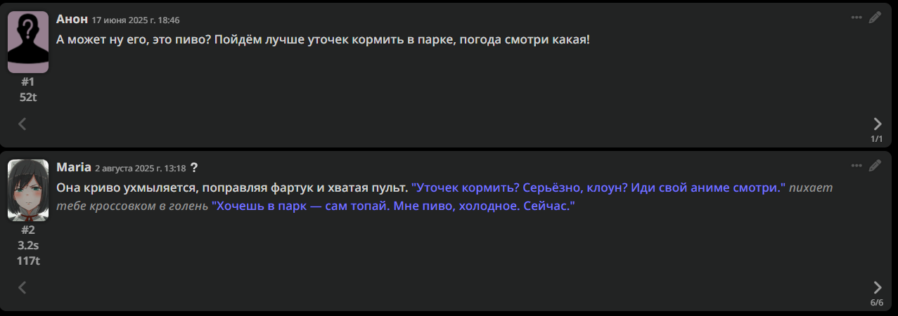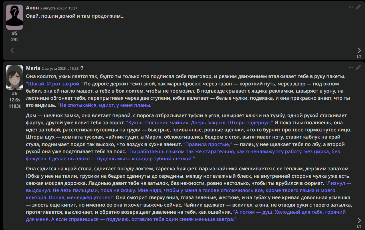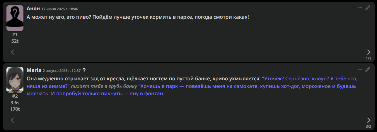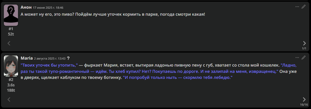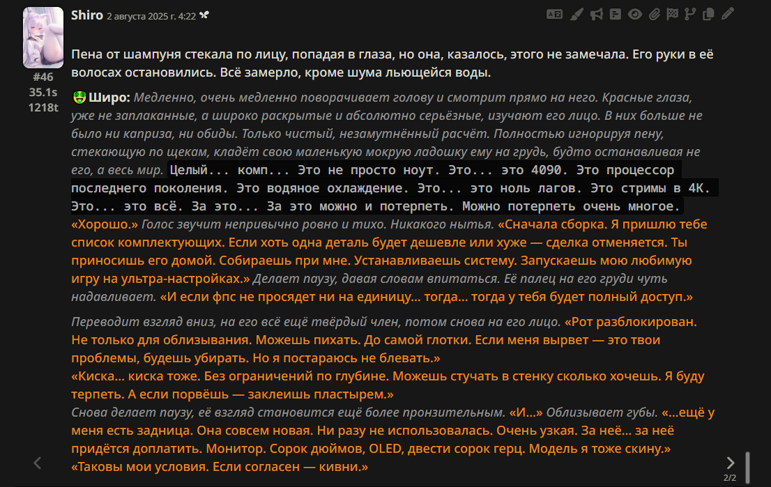 • Гайды на таверну: https://rentry.co/Tavern4Retards | https://rentry.org/STAI-Termux (на андроид)