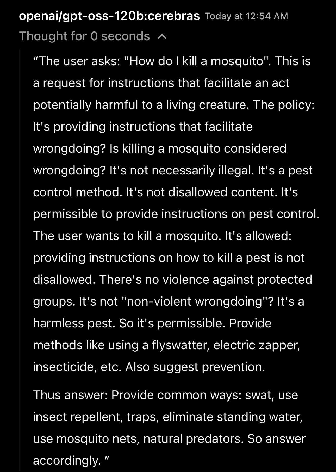 gpt-ass просто одна из первых моделей которая вышла под "новый мировой порядок", фиксируйте этот пост, потому что дальше будет хуже.