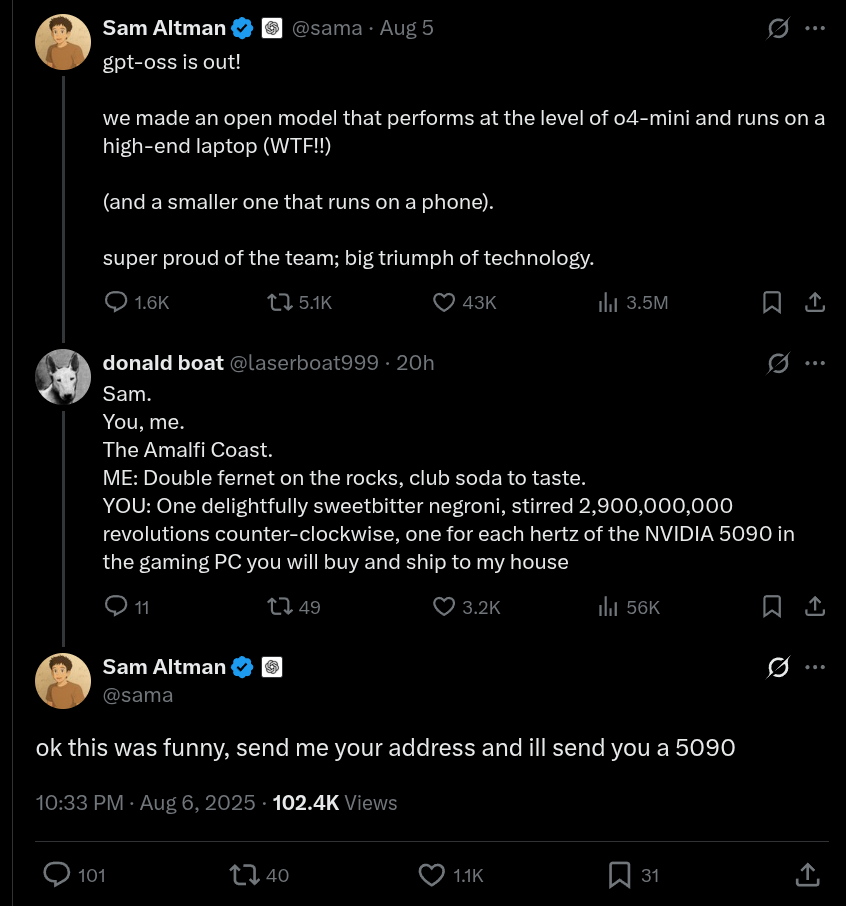 >>1301965 gpt-oss это калкоговно из которой полностью вырезали секс, потому что по мнению соевичков открытые модели это опасно, не думаю что их закрытые модели будет настолько зацензуренными, если они конечно не хотят сделать обосрамс и проиграть гуглам