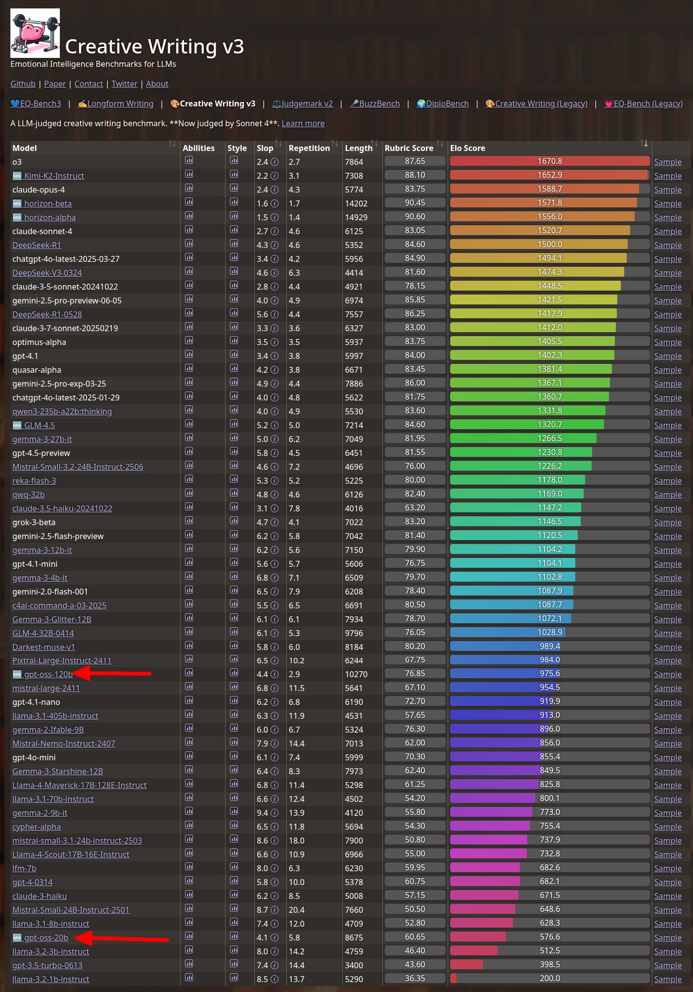 Этот тест обсирают только потому что o3 там на первом месте, но эти идиоты не понимают что она действительно одна из САМЫХ креативных.