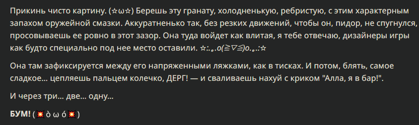 Посидел я на 5, скажу вам что это просто глоток кума после всего этого говна. Пишет интересно, но без графоманской срани, придумывает новые повороты в сюжете, дописывает детали так чтобы они гармонично ложились на уже существующие факты. Держит разметку, не шизит, не проёбыввется в деталях. В общем и целом хорошая, годная сетка.