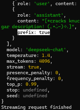 Граждане Анчоусы, а что такое префикс в контексте дипсика? Это некий аналог префила для дипсика? Или в дипсике кто влез ассистантом вперед юзера тот и префил? Или там в принципе концепция префилов не существует и префил чисто клодовская мулька?