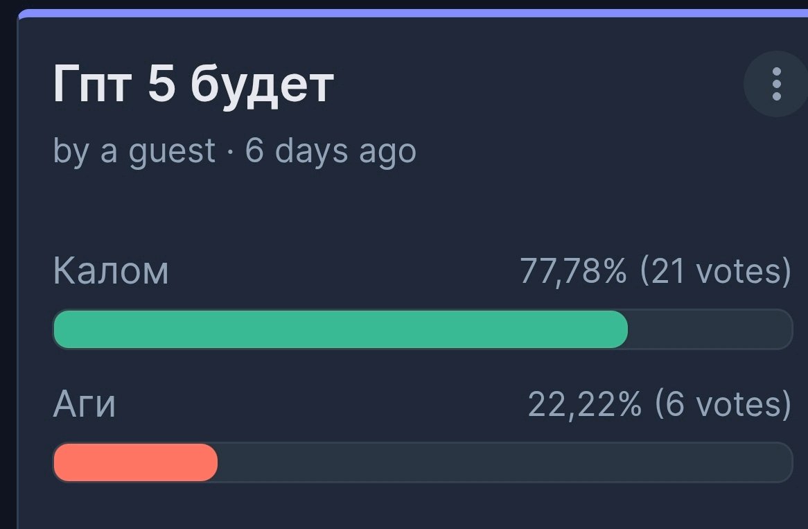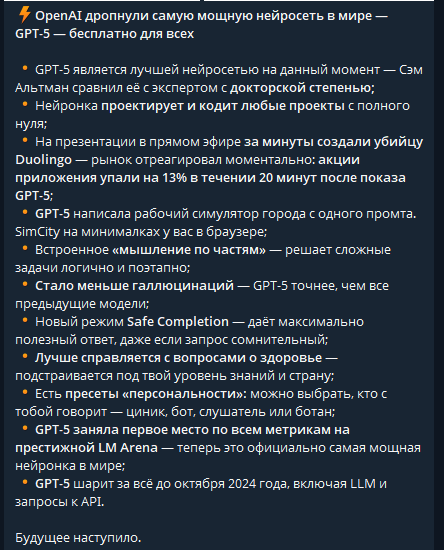Аноны вы не понимаете! Гпт 5 этой хиден гем, точно так же было с гпт 4.5, её в момент выхода вообще все обсирали, потом на целый месяц забыли, и только потом поняли что она охуенная, то же самое с гпт 5