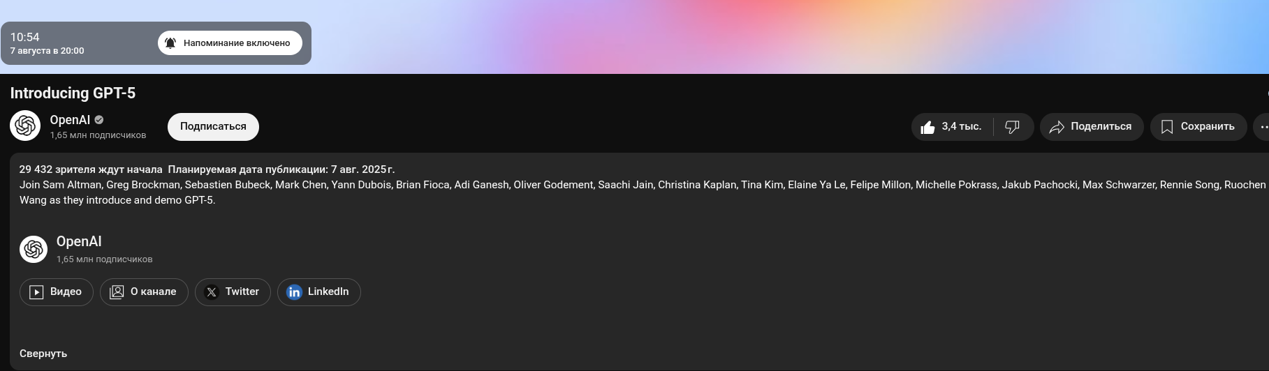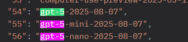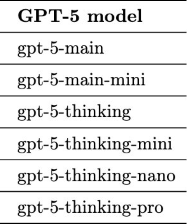 GPT-5 pro (пока только в ChatGPT, openai только через месяц примерно релизят -pro модельки в апи) GPT-5 thinking (возможно только в ChatGPT, типа как o4-mini-high, в апи будет параметр для thinking) GPT-5 GPT-5 Mini (возможно только в апи) GPT-5 Nano (возможно только в апи)