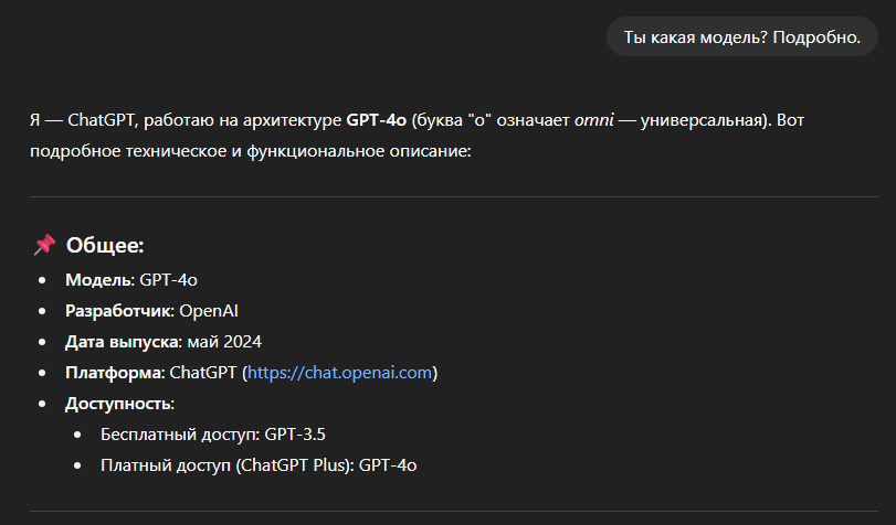 Но да, прорыва никто не увидел. По ощущениям, это ухудшенная версия 4.1 (что в русике очень заметно), но зато не аполоджайзит совершенно. И в дедовском куме на ингрише не совсем плоха. В целом хорошая и гораздо более умная замена писику, со всякими инфоблоками думаю она может справляться на ура.