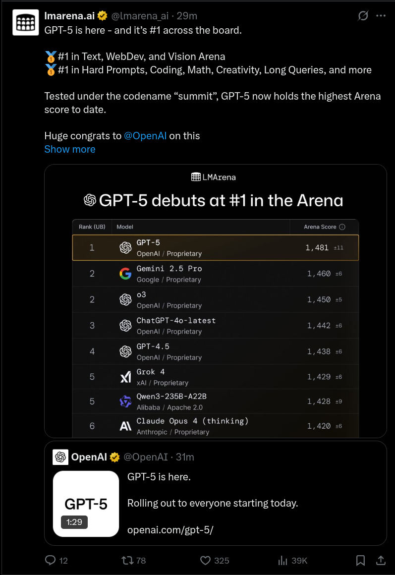 >>1302680 ну и это больше тест на датасет, у них датасет для GPT-5 кончается 2024-10, так что не факт что хорошо отвечать на такое будет. Вот два ответа: Без поиска могу слегка ошибиться, но по памяти: