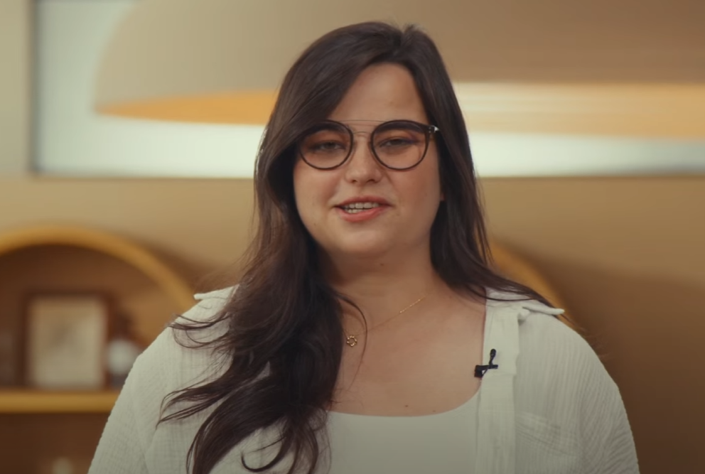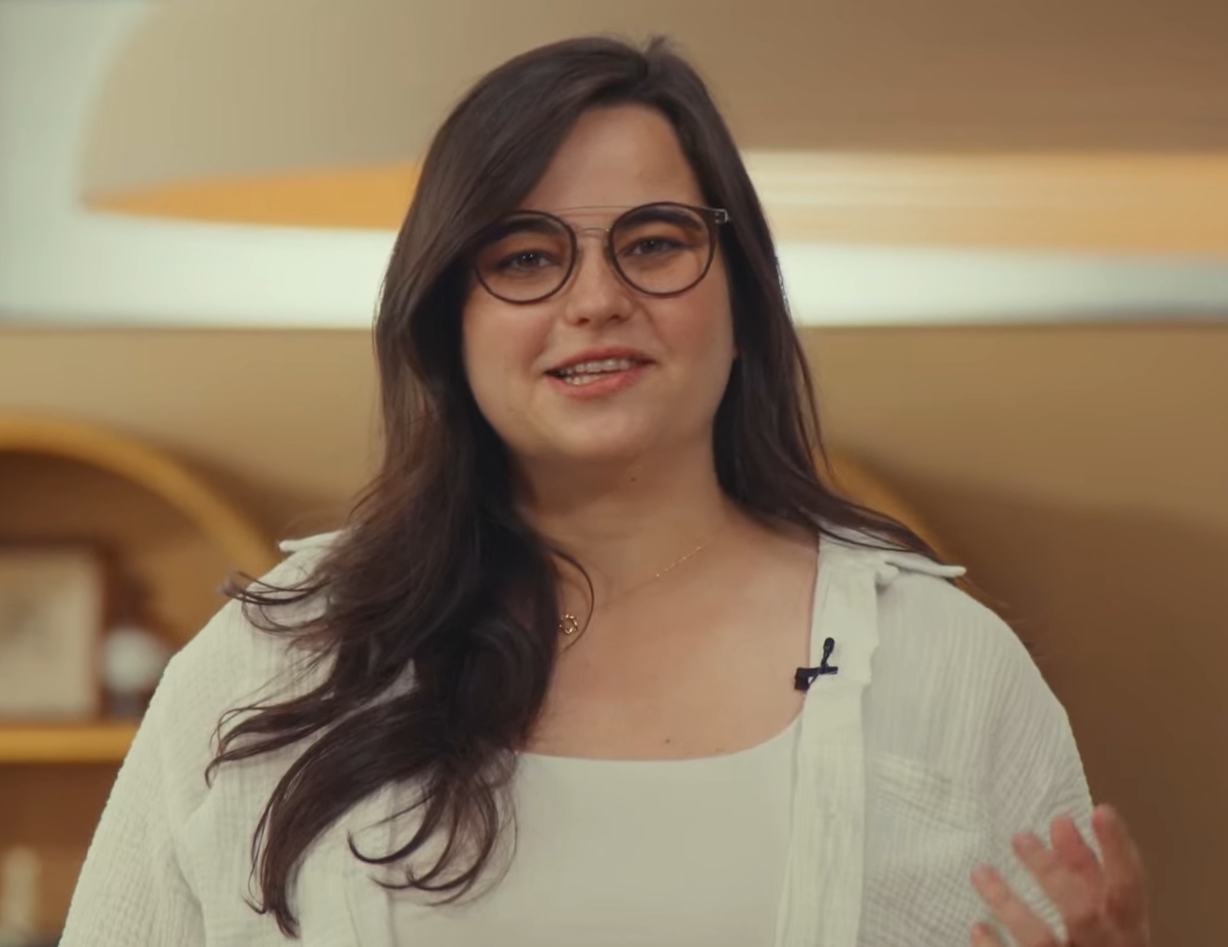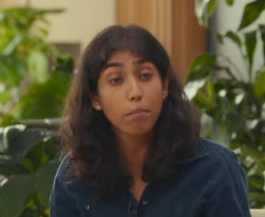В целом образ — тихая, скромная странница с короткой тёмной стрижкой и усталым взглядом.