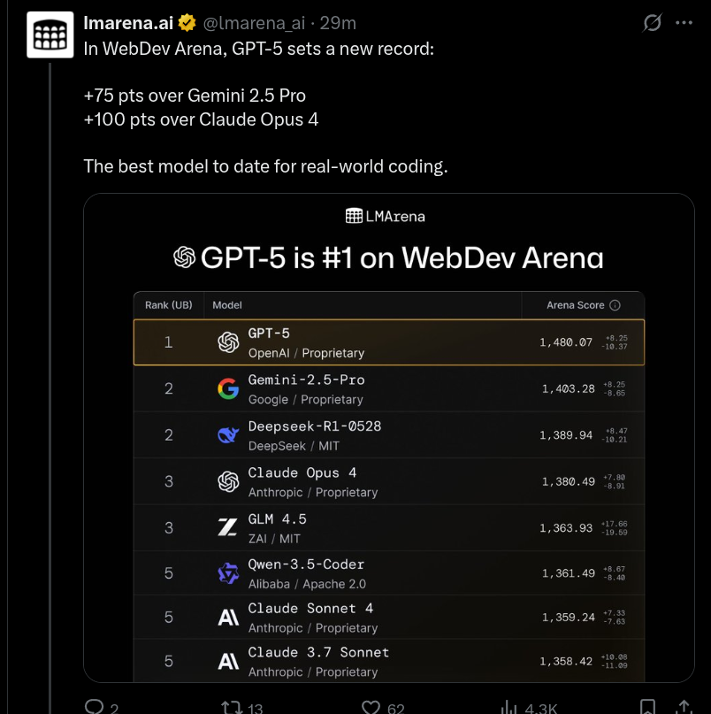 ▪️Модель может эффективно выполнять сложные логические задачи и многошаговые процессы; ▪️GPT-5 может генерировать код высокого качества и выполнять сложные программные задания; ▪️Значительные улучшения в интерфейсе и взаимодействии с пользователем.