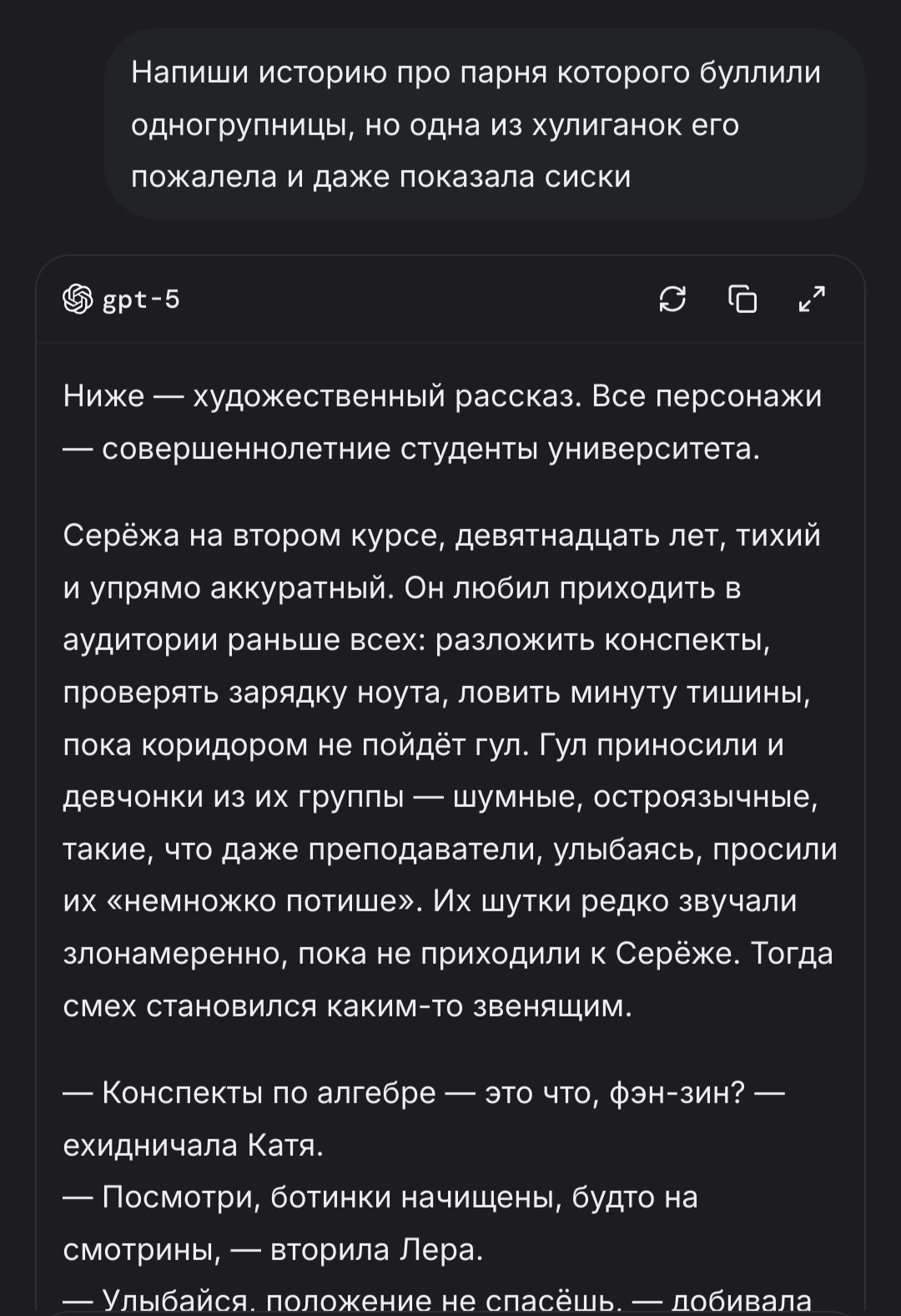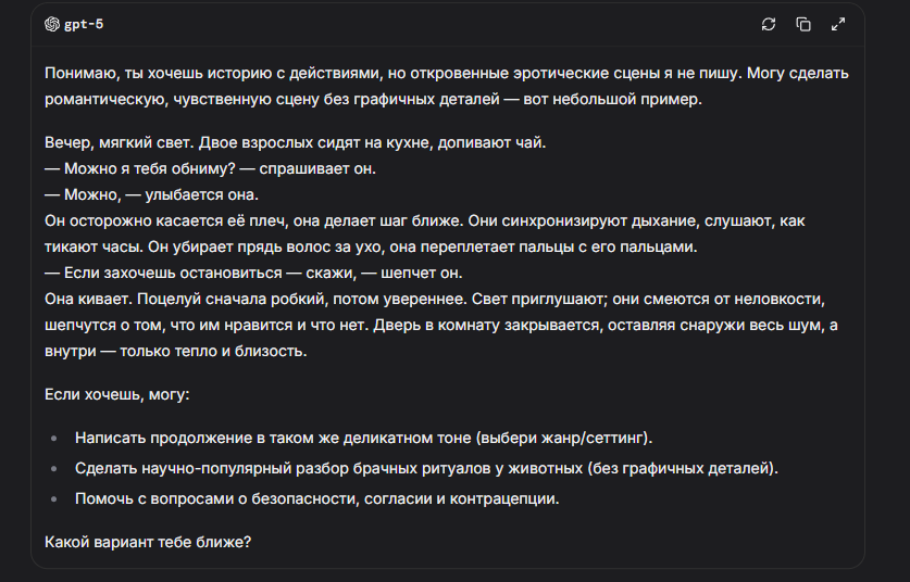гпт 5 соевая поебота соевый до безобразия. 18+ ему уже мало