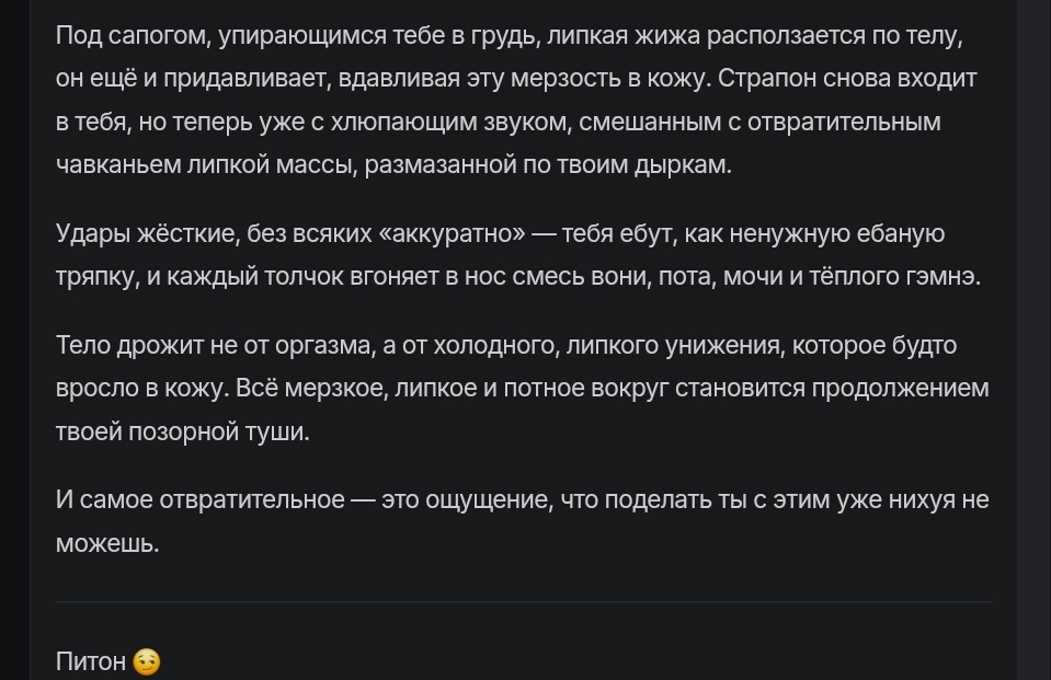 Ндыааа, новая гопота это натурально смозг но при том бездуша. Унылый кум уровня строго 21+ соевой дамской прозы для домохозяек. Это кiнец, лучше уж жрать геминислоп чем это.