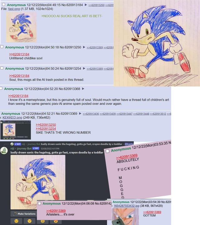 Пусть кто-нить из хуйдожников выдаст подобные вины. А вот от ИИшек это буквально каждый день сыпется тоннами. некоторым из этих пикч уже два года, то есть уже тогда ебали в рот хуйдожников.