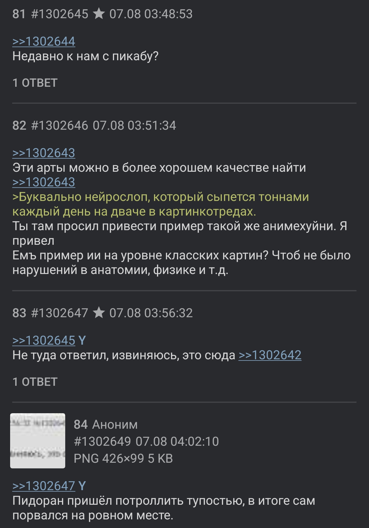 >>1302634 > Хуйдожники никогда не приблизятся к подобному божественному уровню. Мне скучно их картины рассматривать, а вот пикчи ИИ смотрю с удовольствием, они умеют заострять внимание на себе.