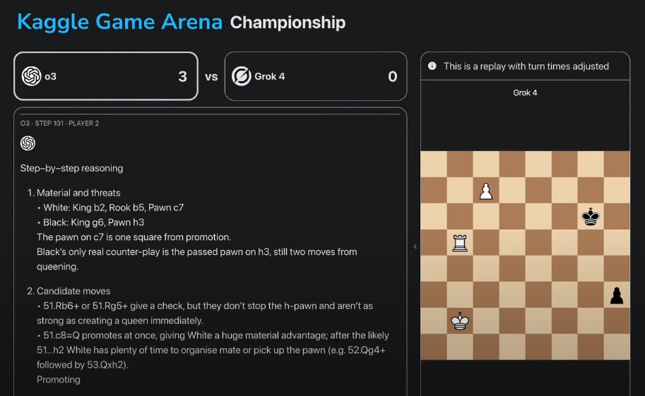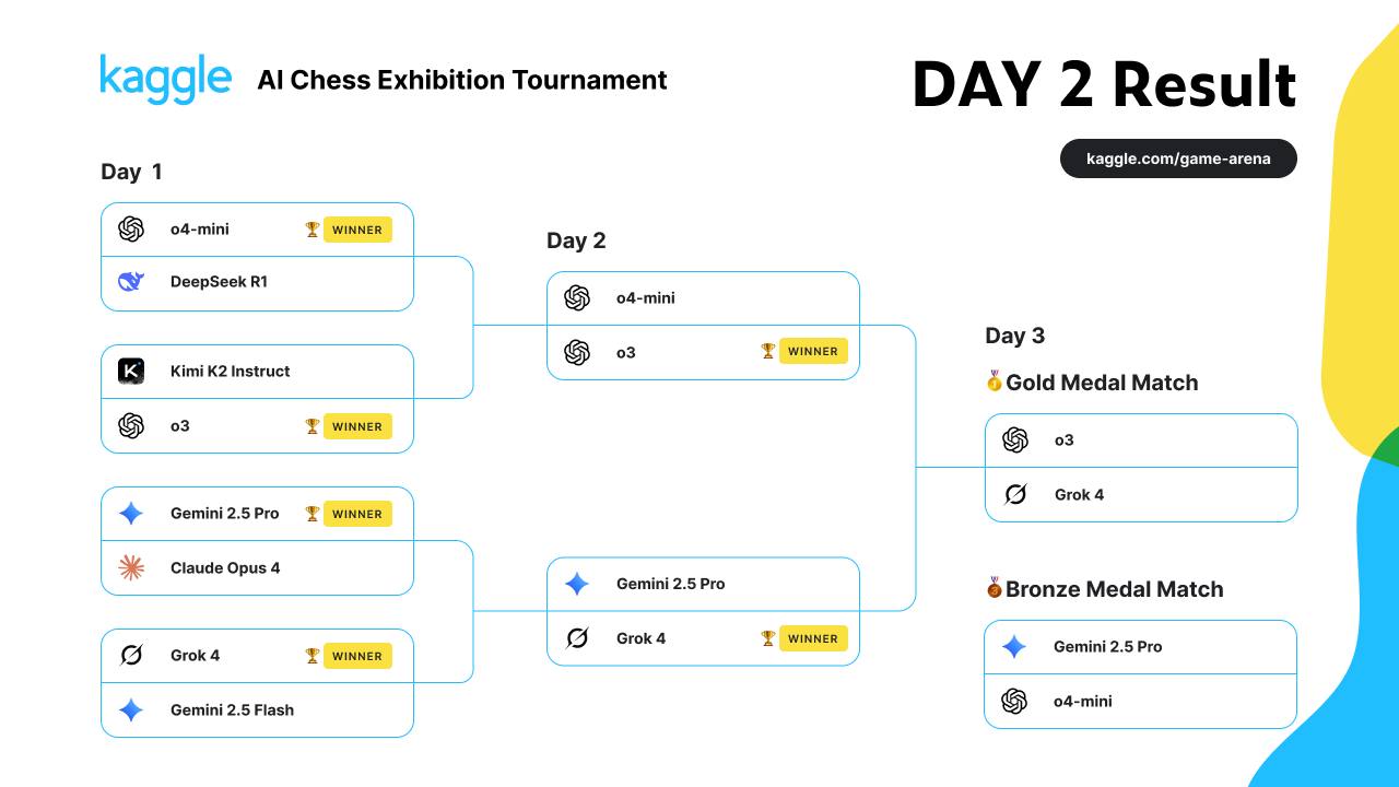 В финал вышли o3 и Grok-4. За третье место будут бороться o4-mini и Gemini 2.5 Pro. Прискорбно, конечно, что в финале ни одной модели от Anthropic. С другой стороны новый Opus 4.1 не участвовал.