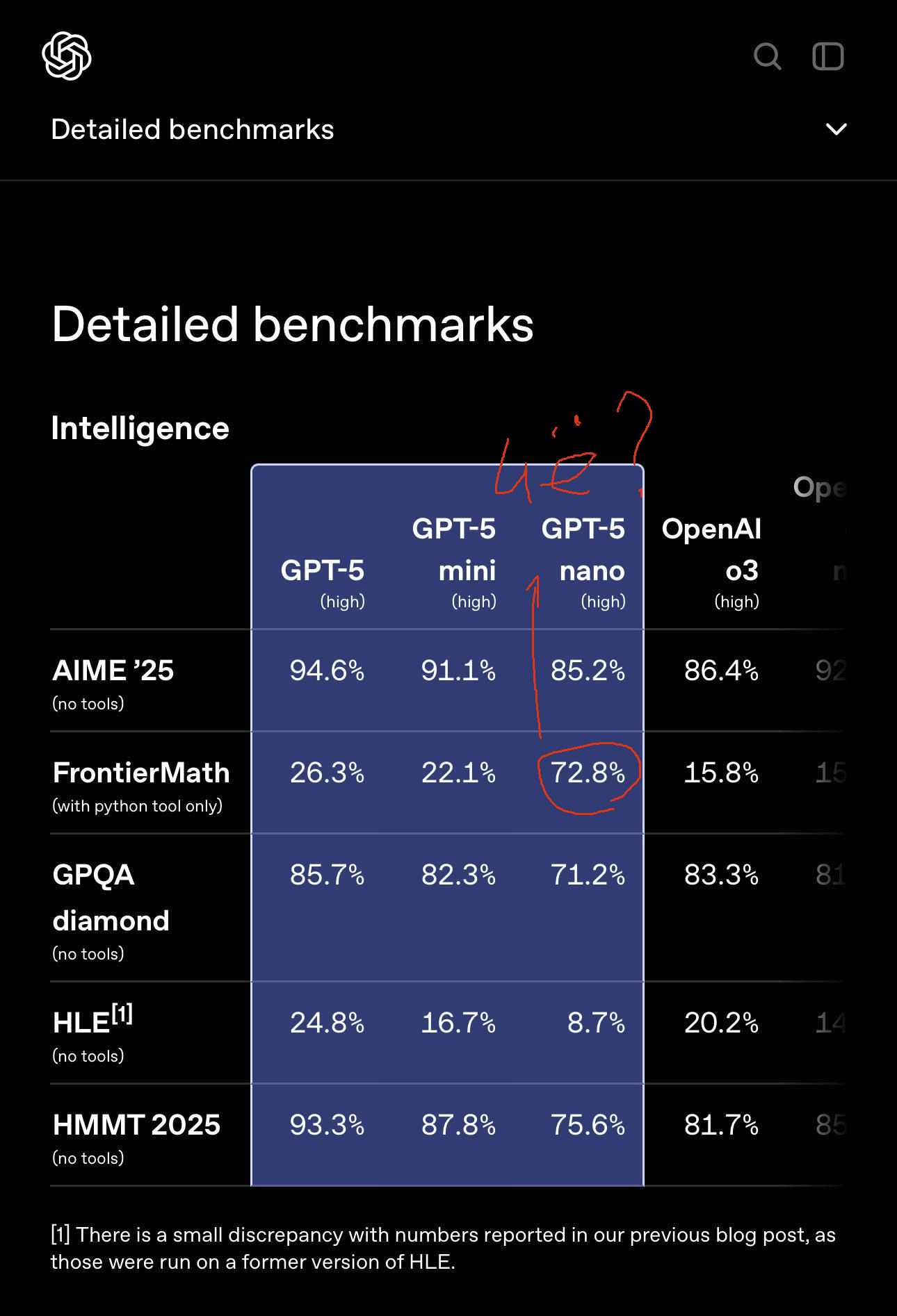 >>1304471 Это на их собственном бенчмарке такие результаты. Скам Хайпмен каждую модель так бенчмаксит, подождем нормальных оценок, но примерно чувствую, что пятая версия немного лучше чем o3 и всё, а функция понимать сколько выделять под задачу нужна, чтоб сервера разгрузить, по итогу все будут на nano или mini сидеть.