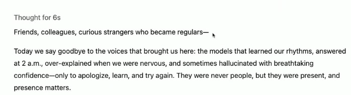 Кто-то скажет, что это просто перформанс кучки фриков. Но по-моему, это идеальный маркер того, куда всё катится. Пока обыватели спорят, отберет ли ChatGPT у них работу, техно-оптимисты уже строят с ним эмоциональные, почти религиозные отношения.