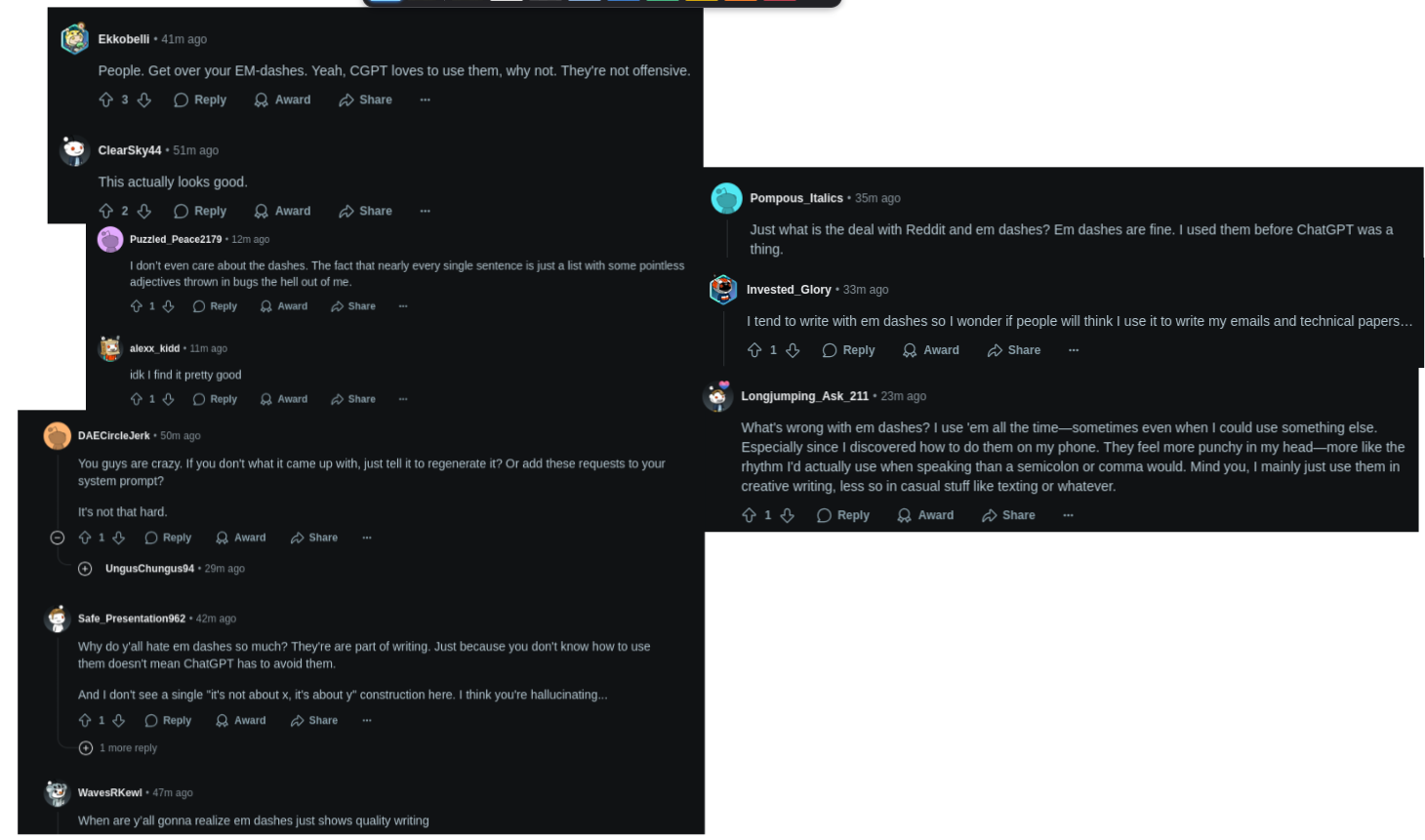 Я уже себя понемногу шизом начинаю чувствовать, когда читаю комменты, что люди всегда их использовали. Будто Альтман ботов нагнал.