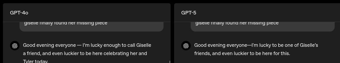 >>1303579 Чел, они боялись увеличить циферку в названии модели два года. Придумывали какие-то 4о, начали новую серию ризонеров "о" и при этом там были крутые штуки типа нативной генерации картинок и аудио, собственно появление ризонинга, всякие дип ресерчи и т.д. Если уж они решили выкатить наконец пятую версию, то чего-то черьезного все-таки достигли