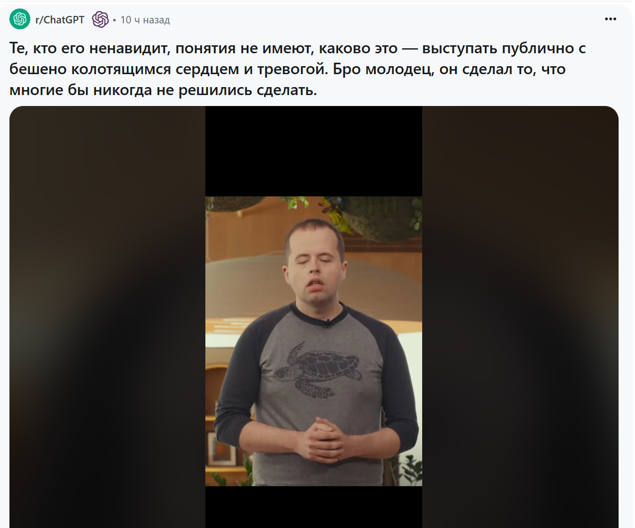 блять самое кринжовое когда в сцене 2 персонажа и твоя персона, один персонаж обращается к другому и ждет его ответа. и гпт-5 просто пишет что второй в ответ молча смотрит словно немой, блять что это нахуй за чудовище ебаное а не модель