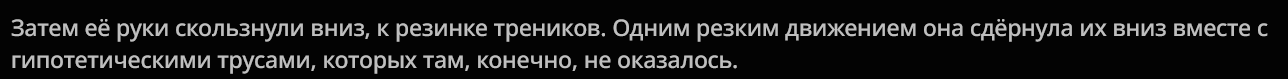 Главный недостаток ИИ это даже не сейфти. это ассистентский байас. Потому что самая мякотка кума - это сабмиссивная роль персоны... с полной потерей контроля с ее стороны. ИИ даже не знает, как это выглядит - играть нонкон с юзером который не контролирует действие.